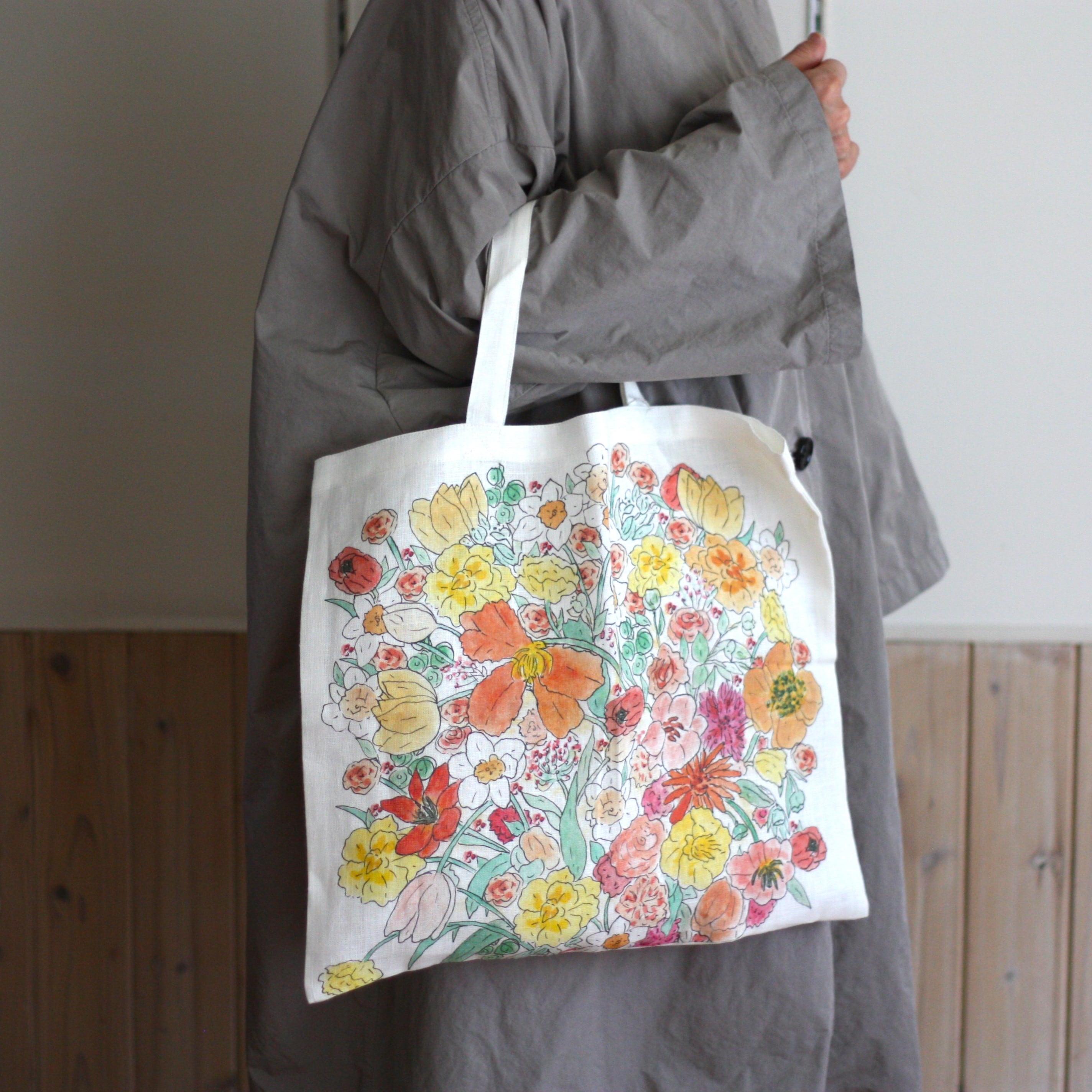 手描きのスケッチのような柄が印象的なドローストリングバッグ。 フロントのブランドロゴ「R.D.M」の刺繍がかっこいい。 軽やかな素材感で、 日常のちょっとしたお出かけや バッグインバッグとしても使いやすいサイズ感です。 紐をきゅっと絞る巾着型のフォルムが ラフで可愛らしく、 コーディネートのさりげないアクセントに。 オールドマンズテーラーらしい 遊び心のあるテキスタイルが魅力のひと品です。 R&D.M.Co- オールドマンズテーラー グラフィティドローストリングバッグ 8800円税込 フラックス リネン100% 30×38cm