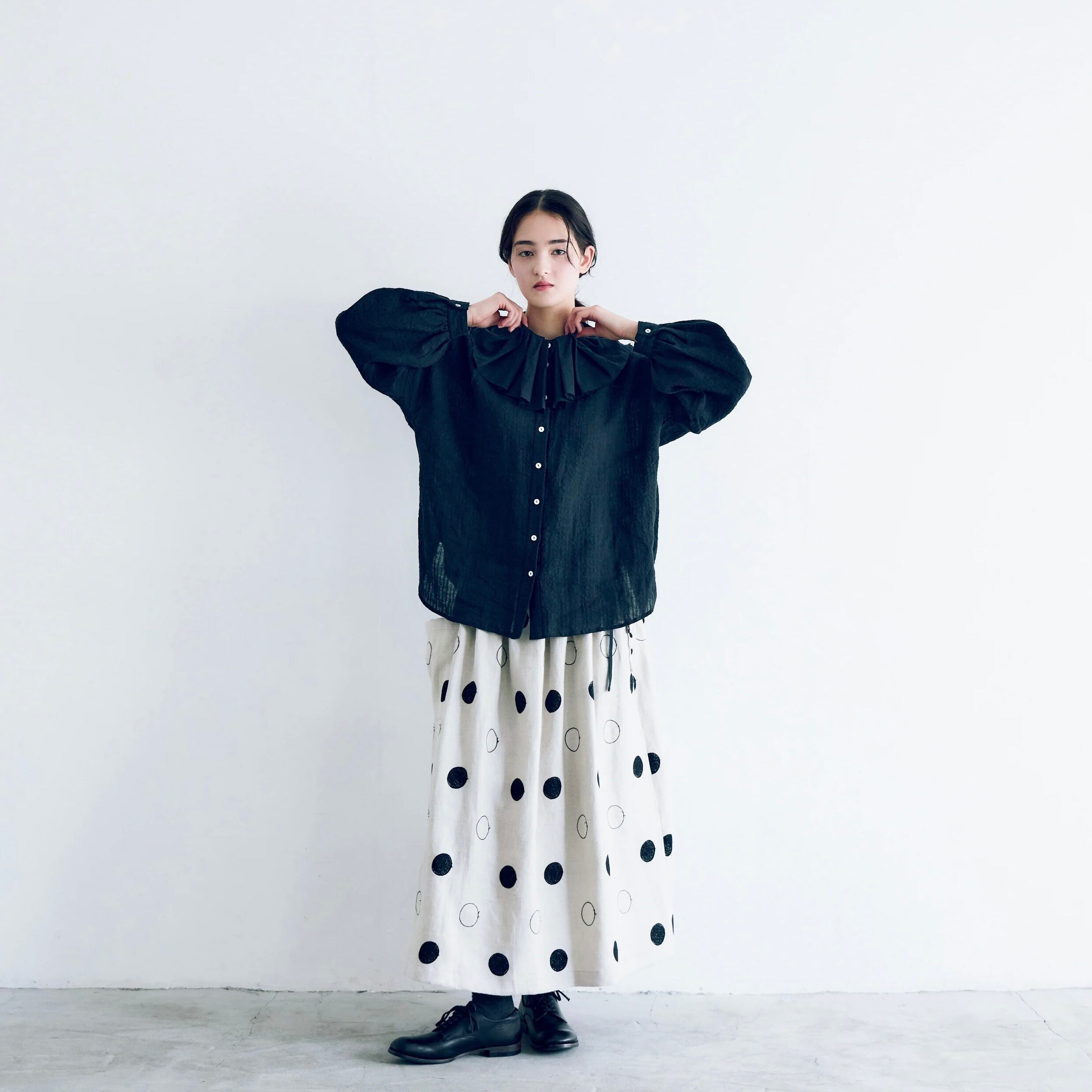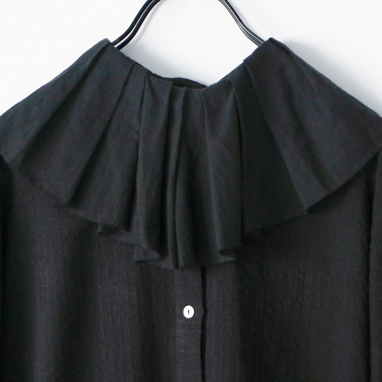 MAGALI マガリ ストライプリネンアンティークカラーブラウス ブラック