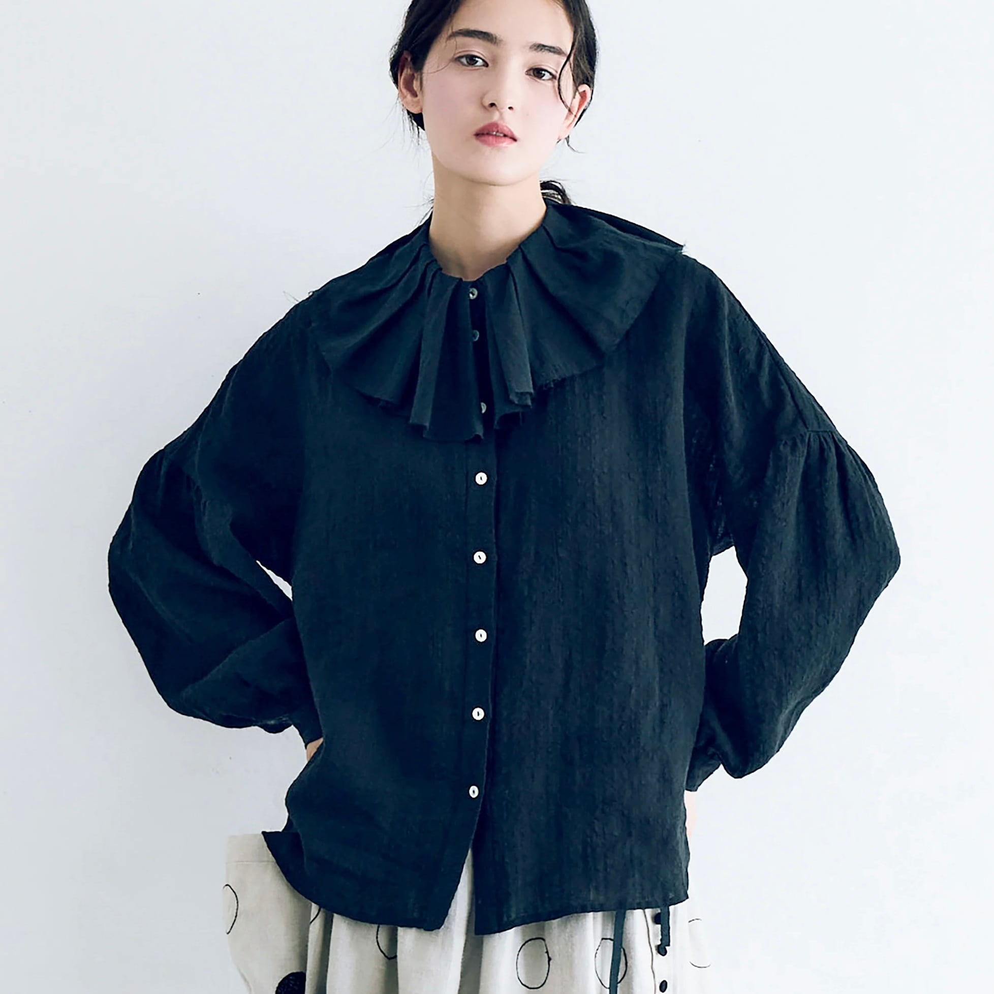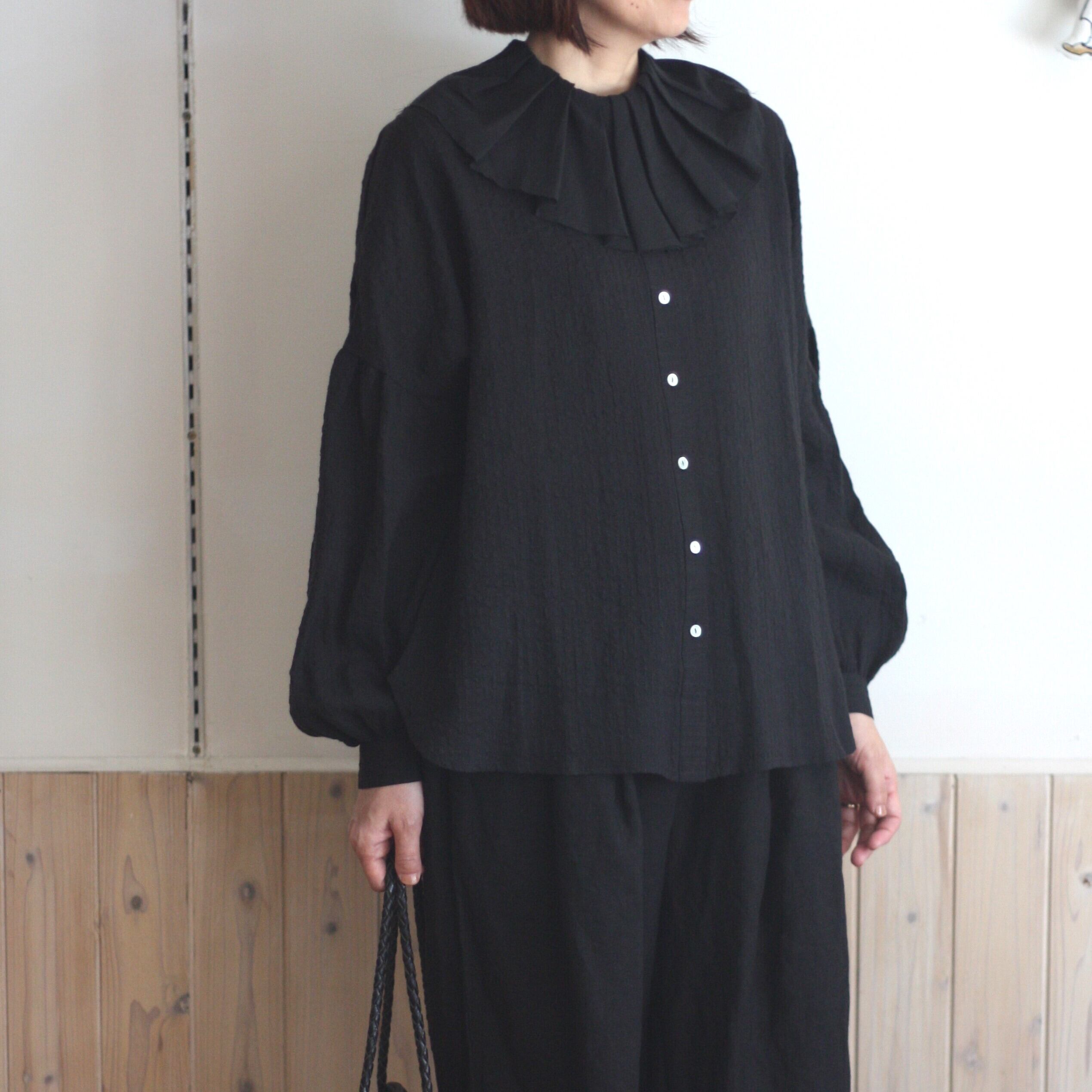 ●フリルは切りっぱなし仕様となっており、着ていくうちにフリルは古布のように、味のある雰囲気に変化していきます。