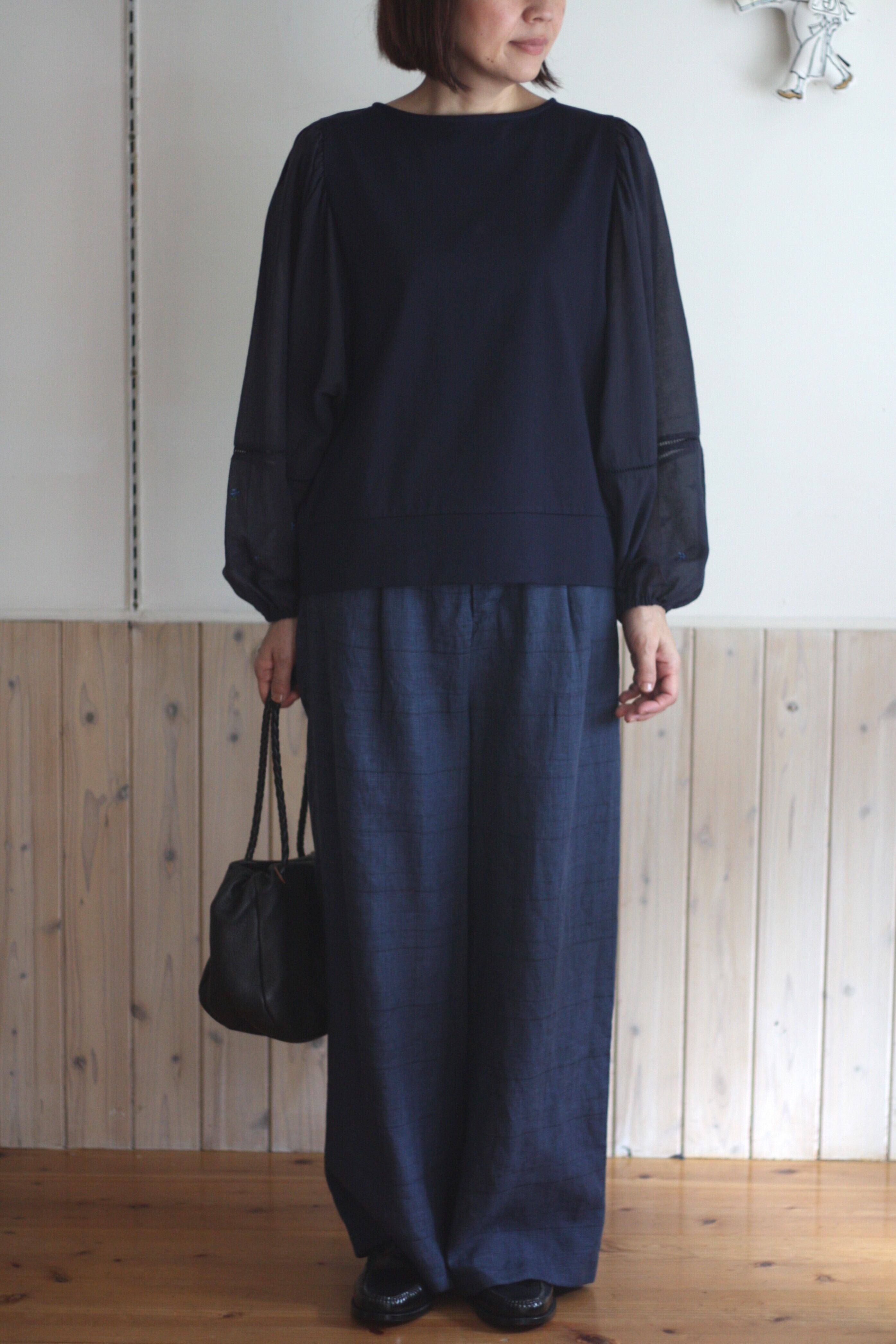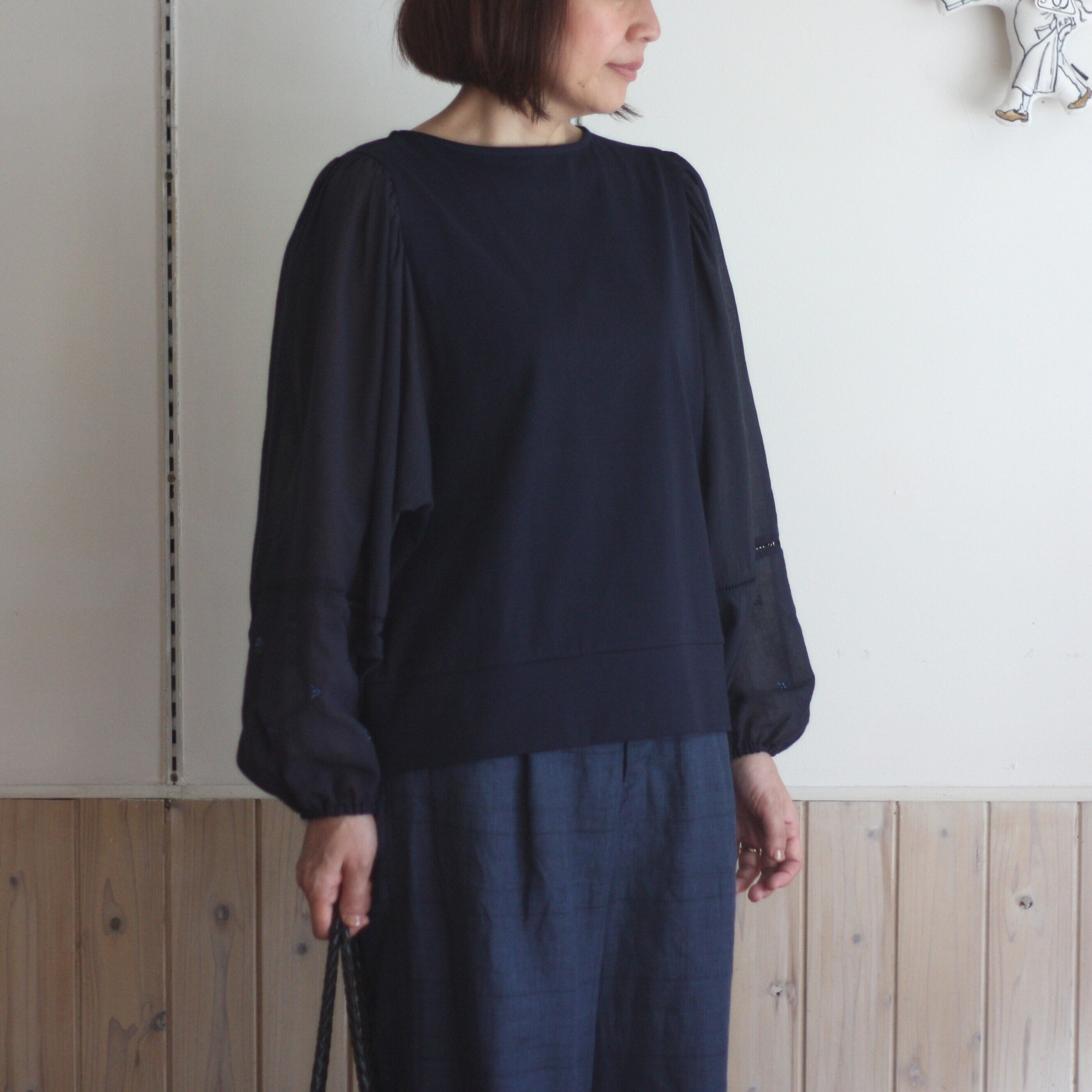 Porter des boutons flower刺繍ギャザースリーブプルオーバー ネイビー