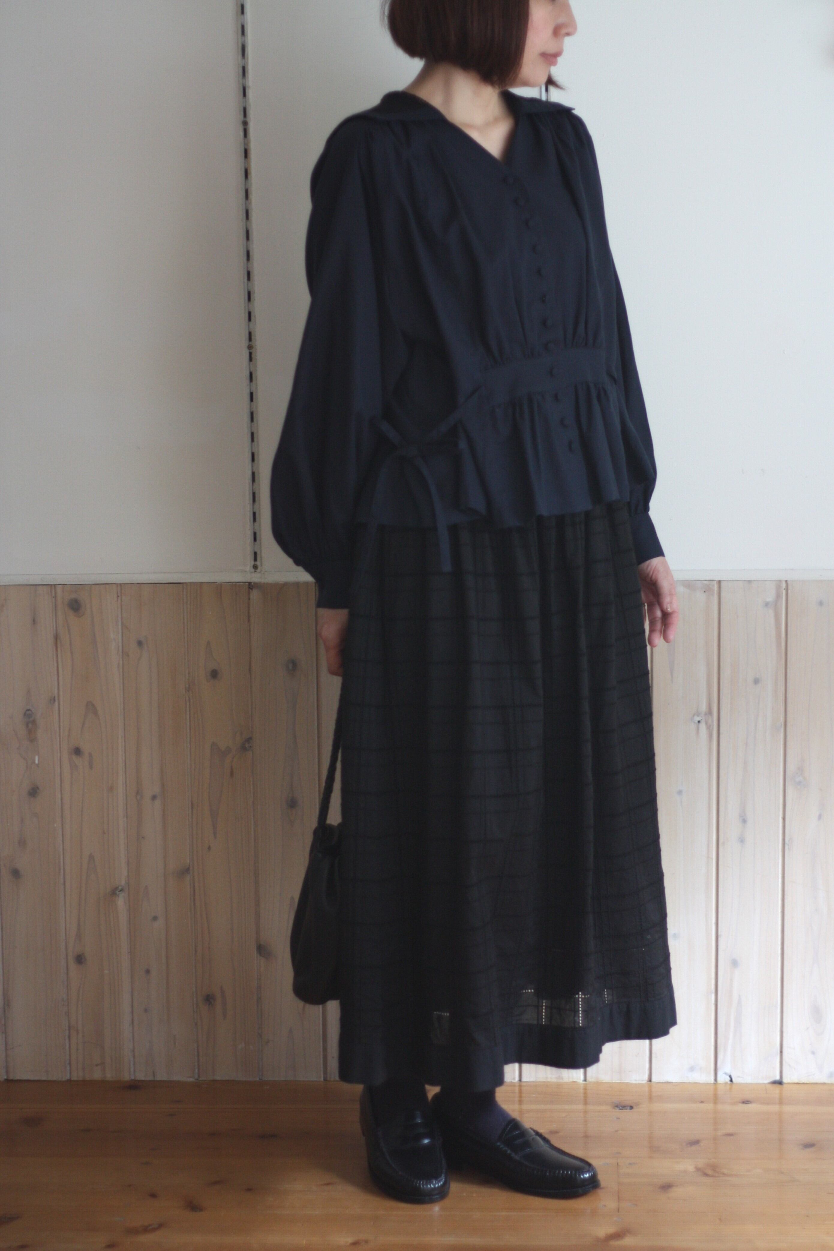 細かなギャザーをたっぷりと入れた優しいシルエット