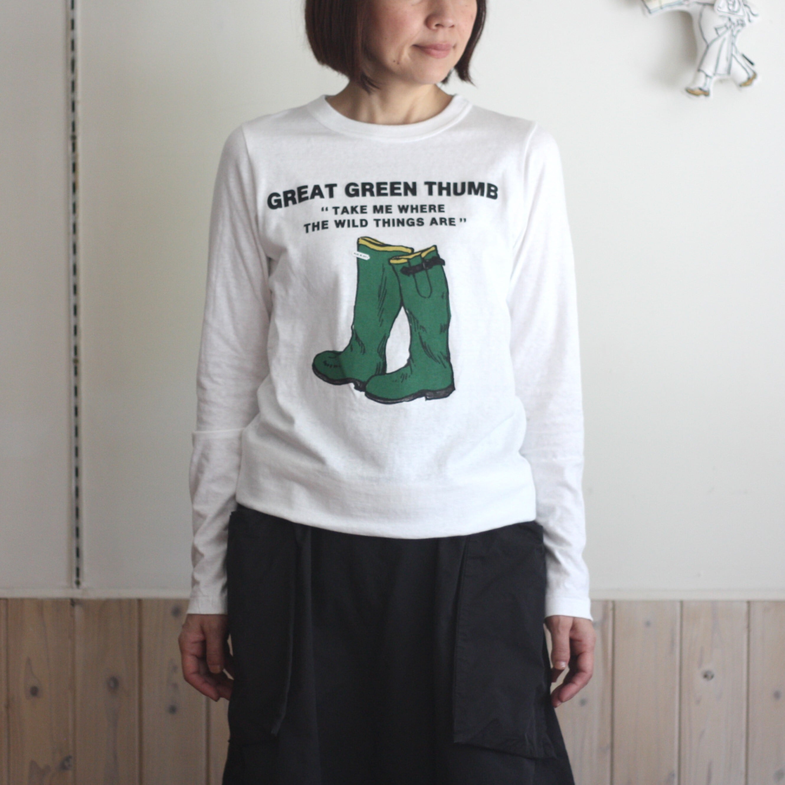 グリーンの長靴が描かれた長袖Tシャツが入荷しました。