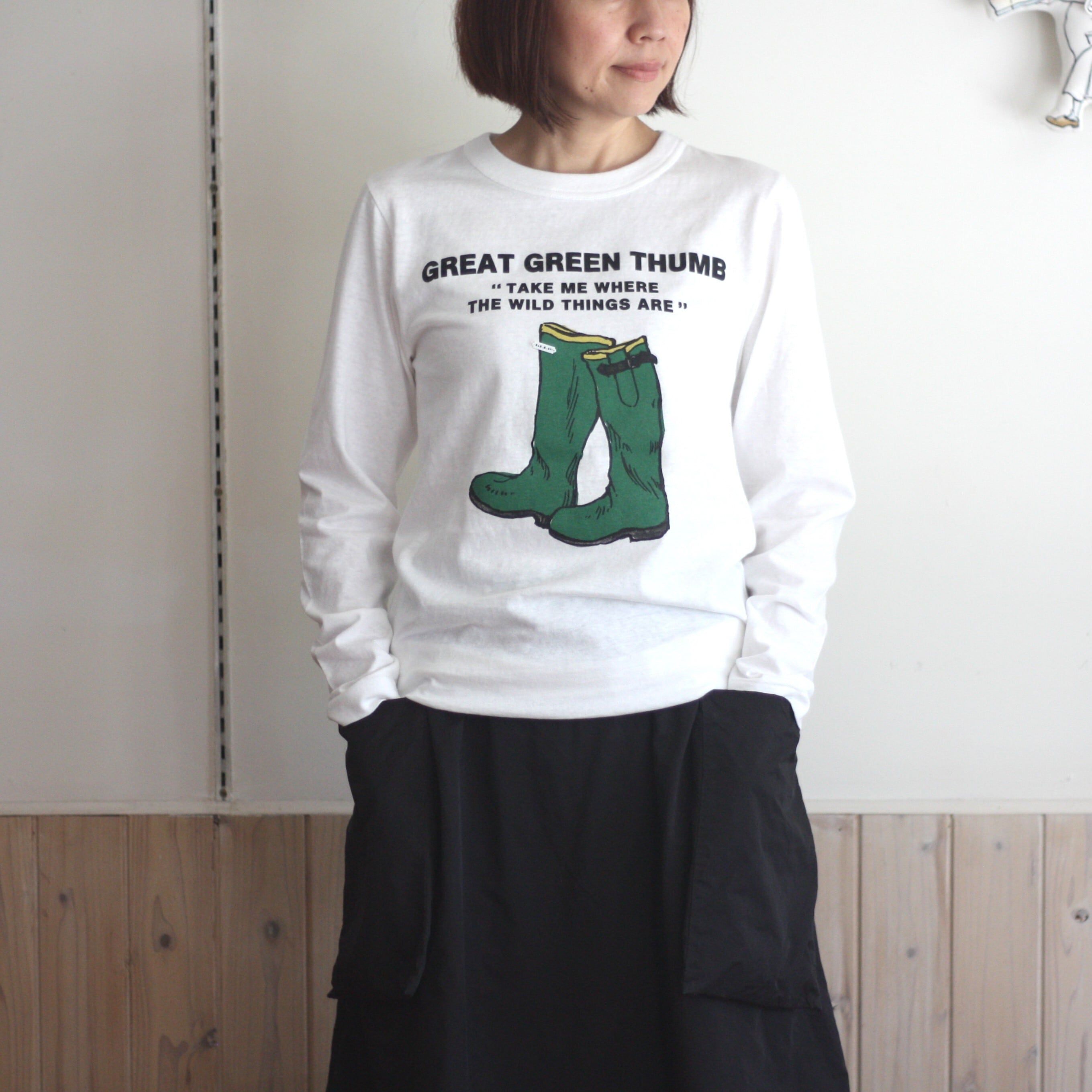 グリーンの長靴が描かれた長袖Tシャツが入荷しました。