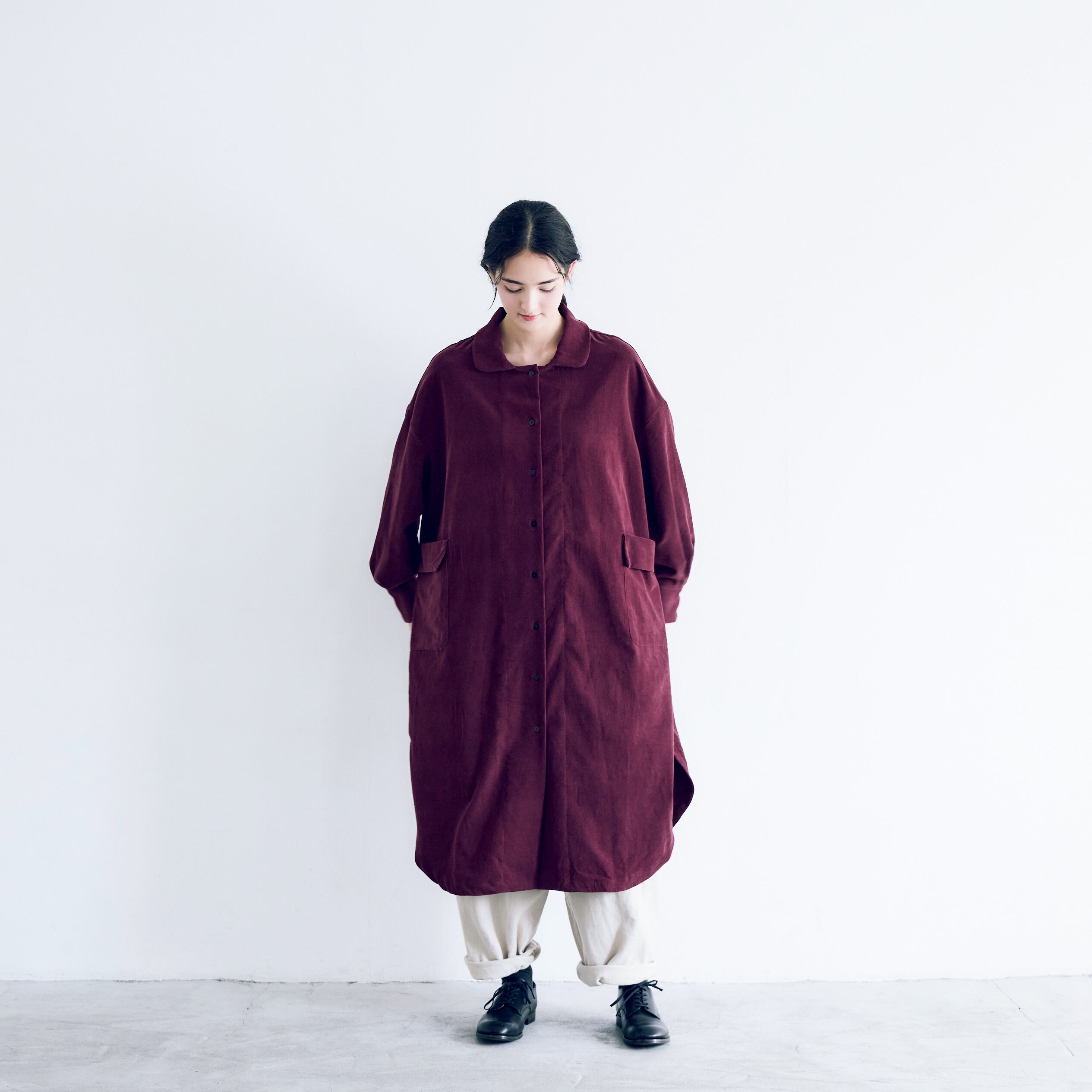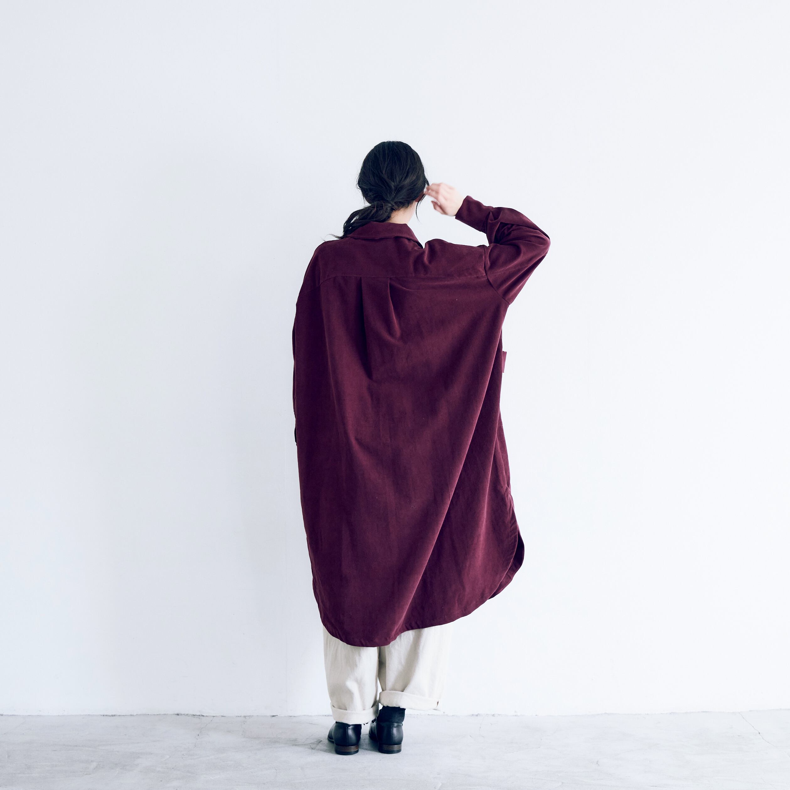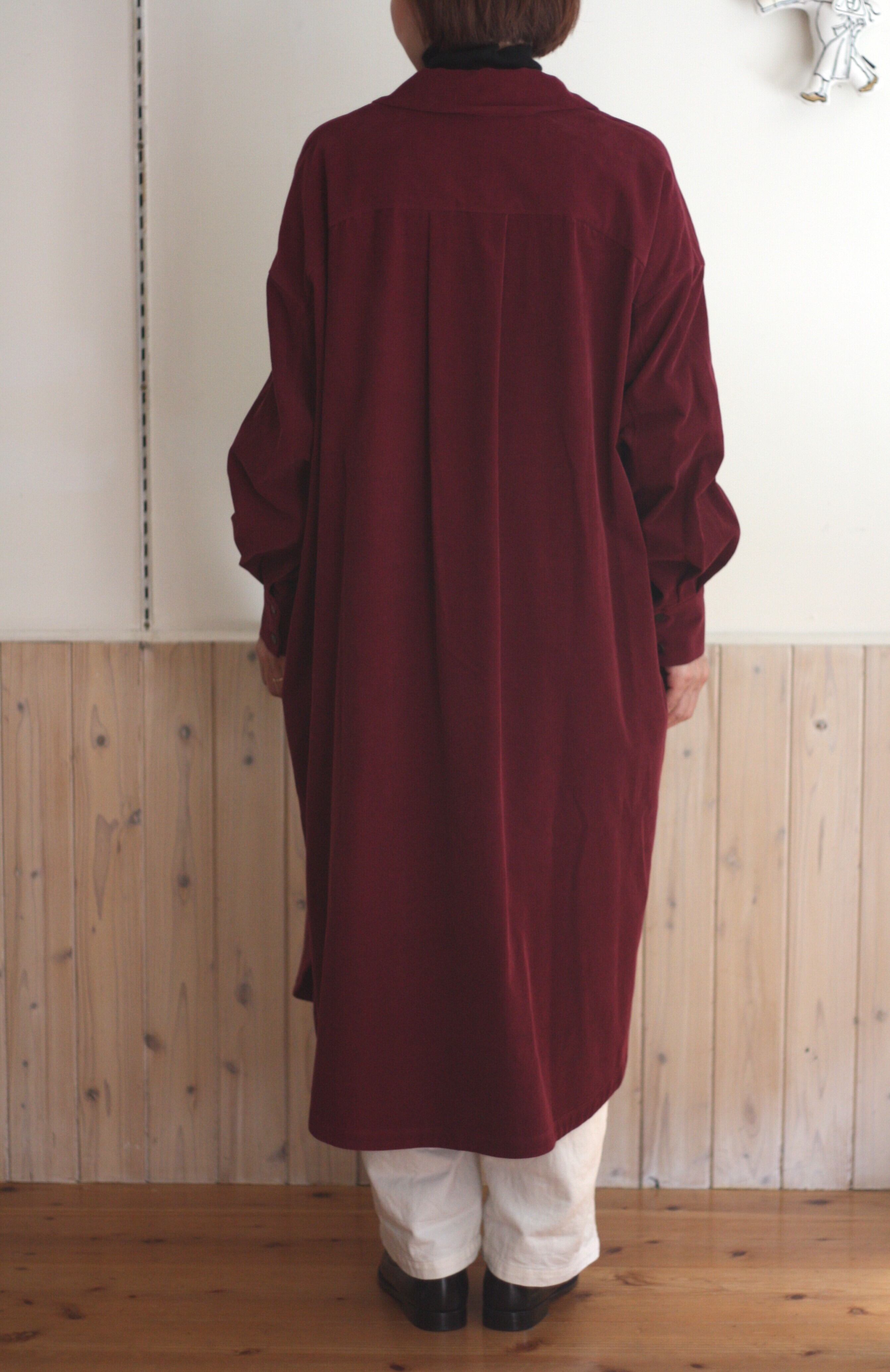 MAGALI 天日干しコットンコーデュロイシャツドレス バーガンディ