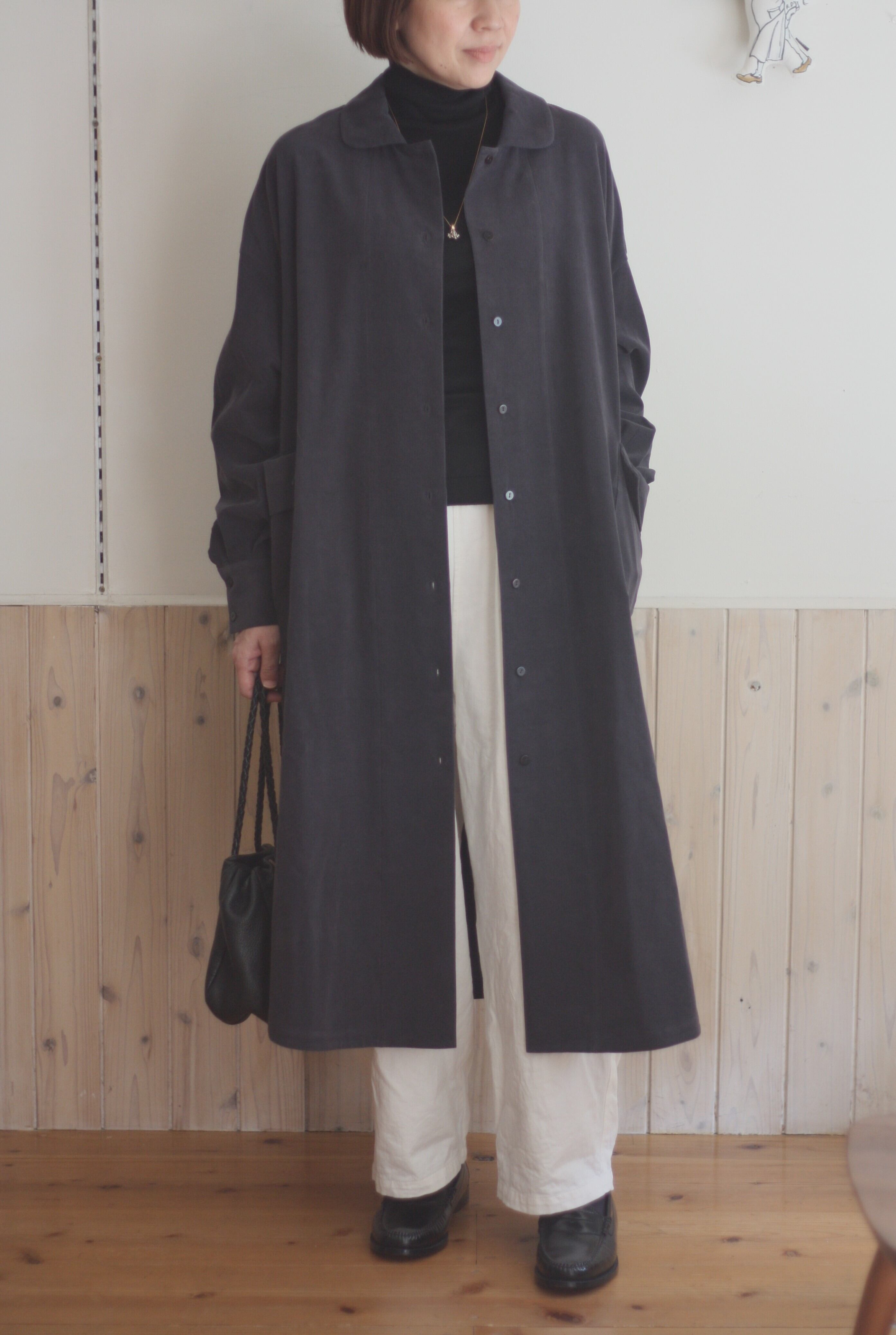 MAGALI 天日干しコットンコーデュロイシャツドレス チャコール