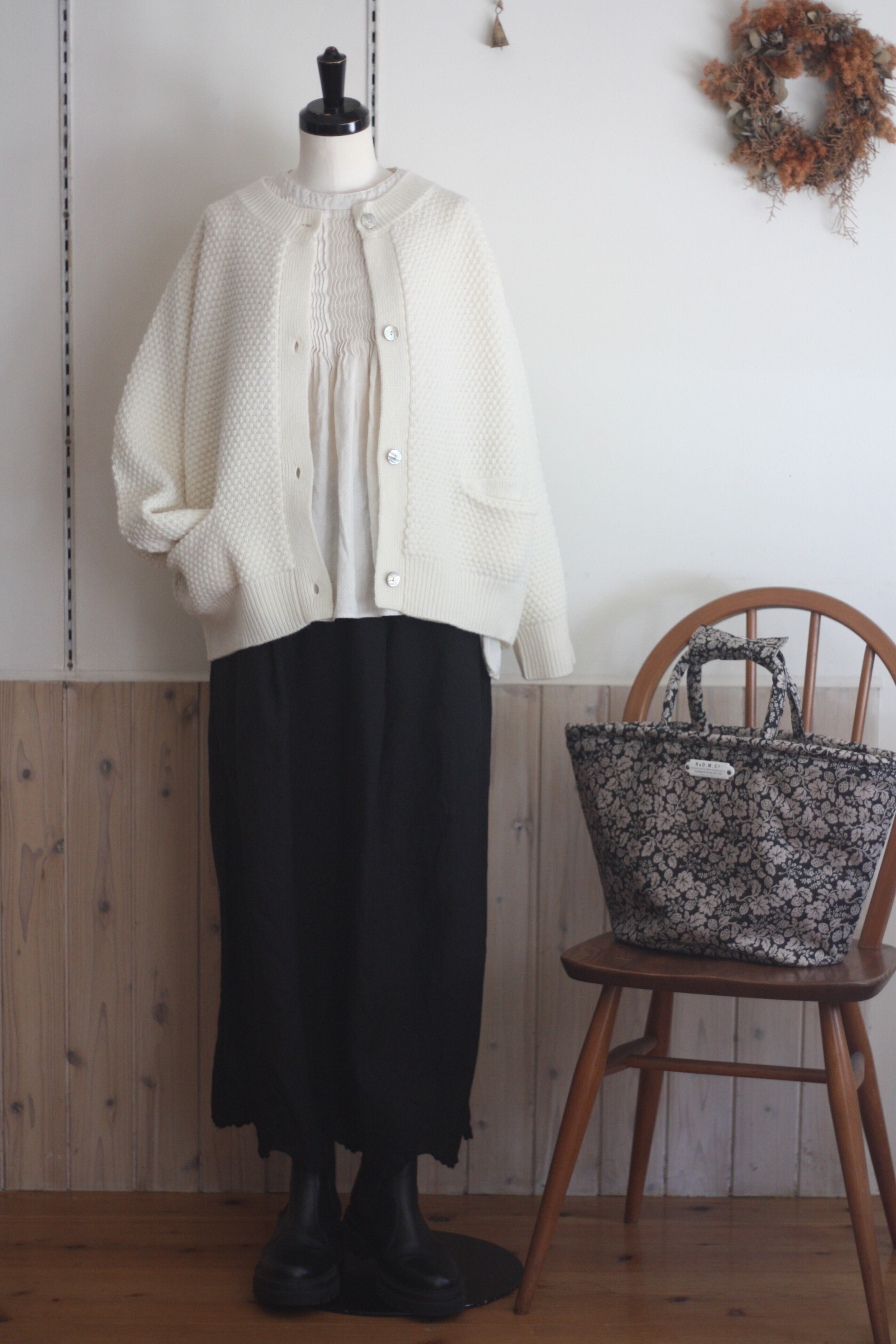 一枚で存在感がありながら、ニットやカーディガンのインナーとしても活躍します。