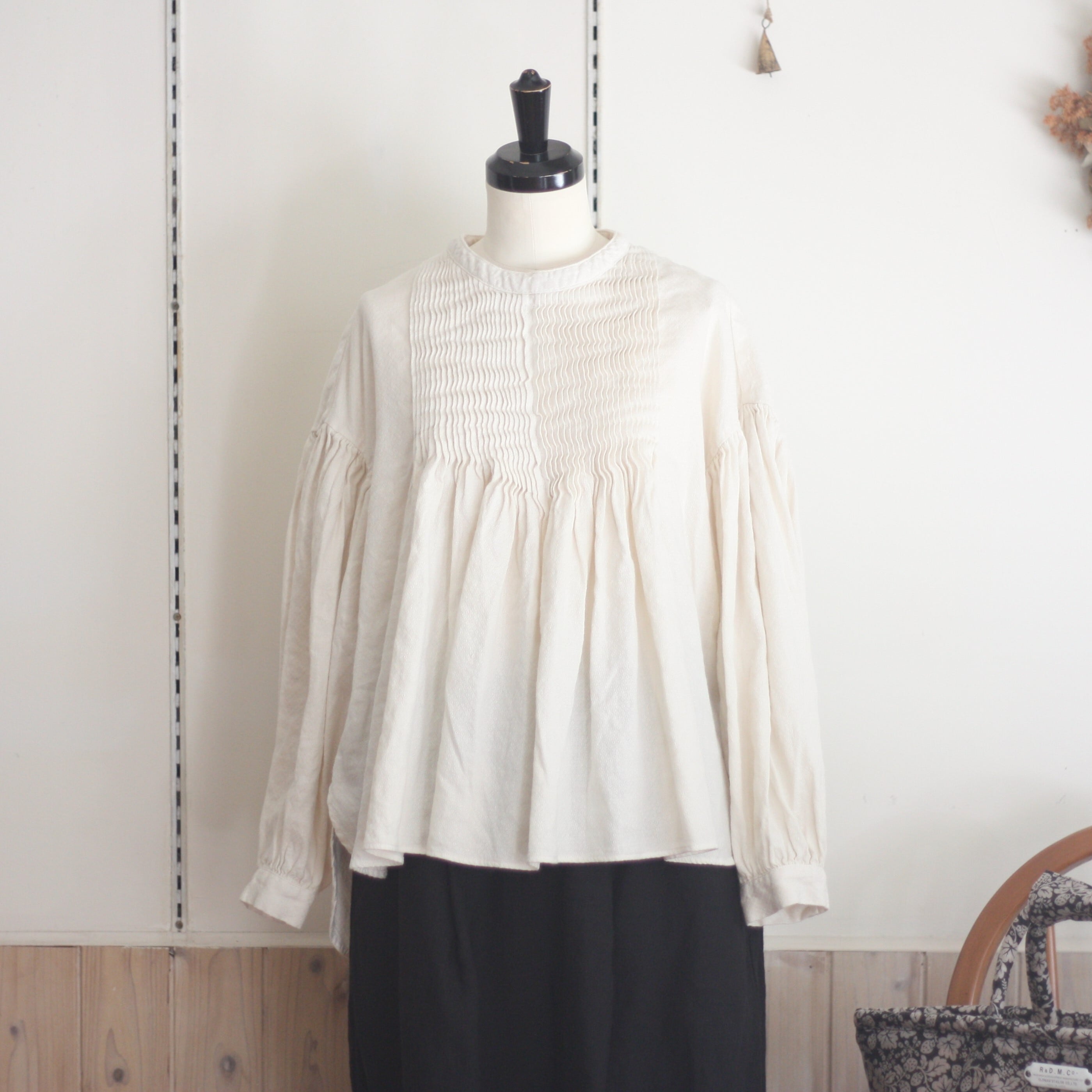 Gauze# ガーゼ アンティークジャガードピンタックブラウス アンティークホワイト
