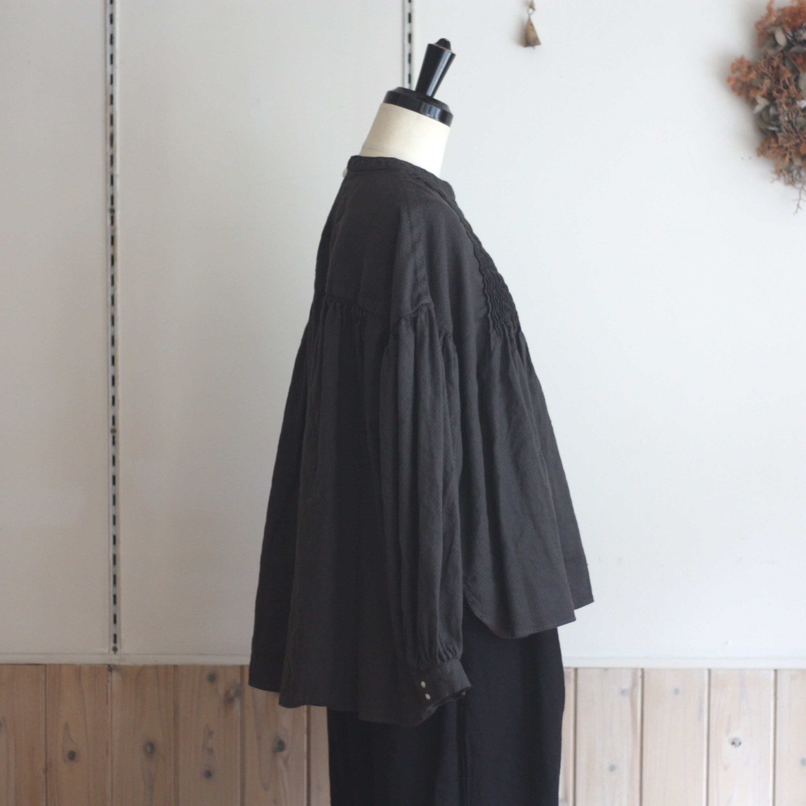 Gauze# ガーゼ アンティークジャガードピンタックブラウス チャコール