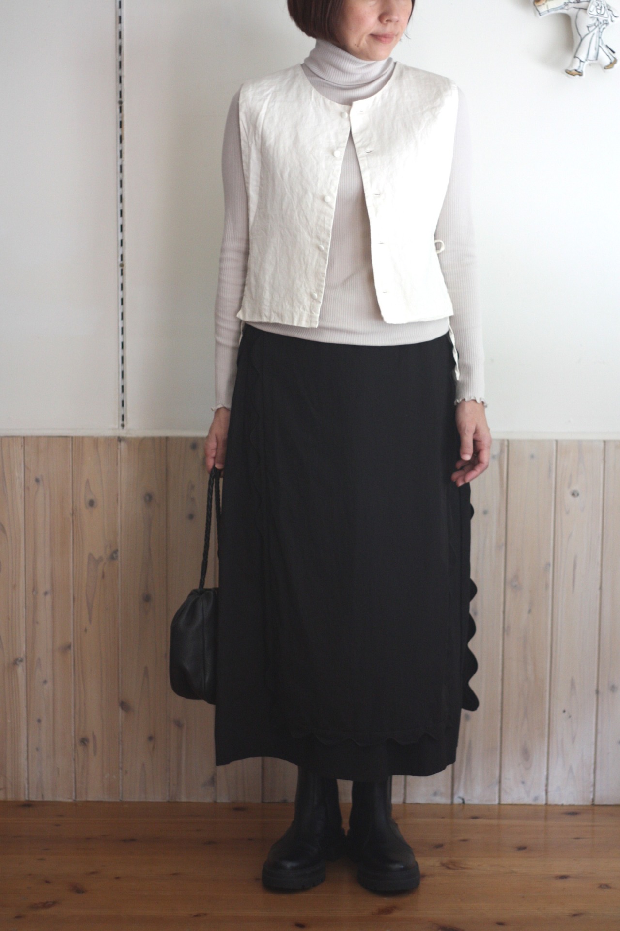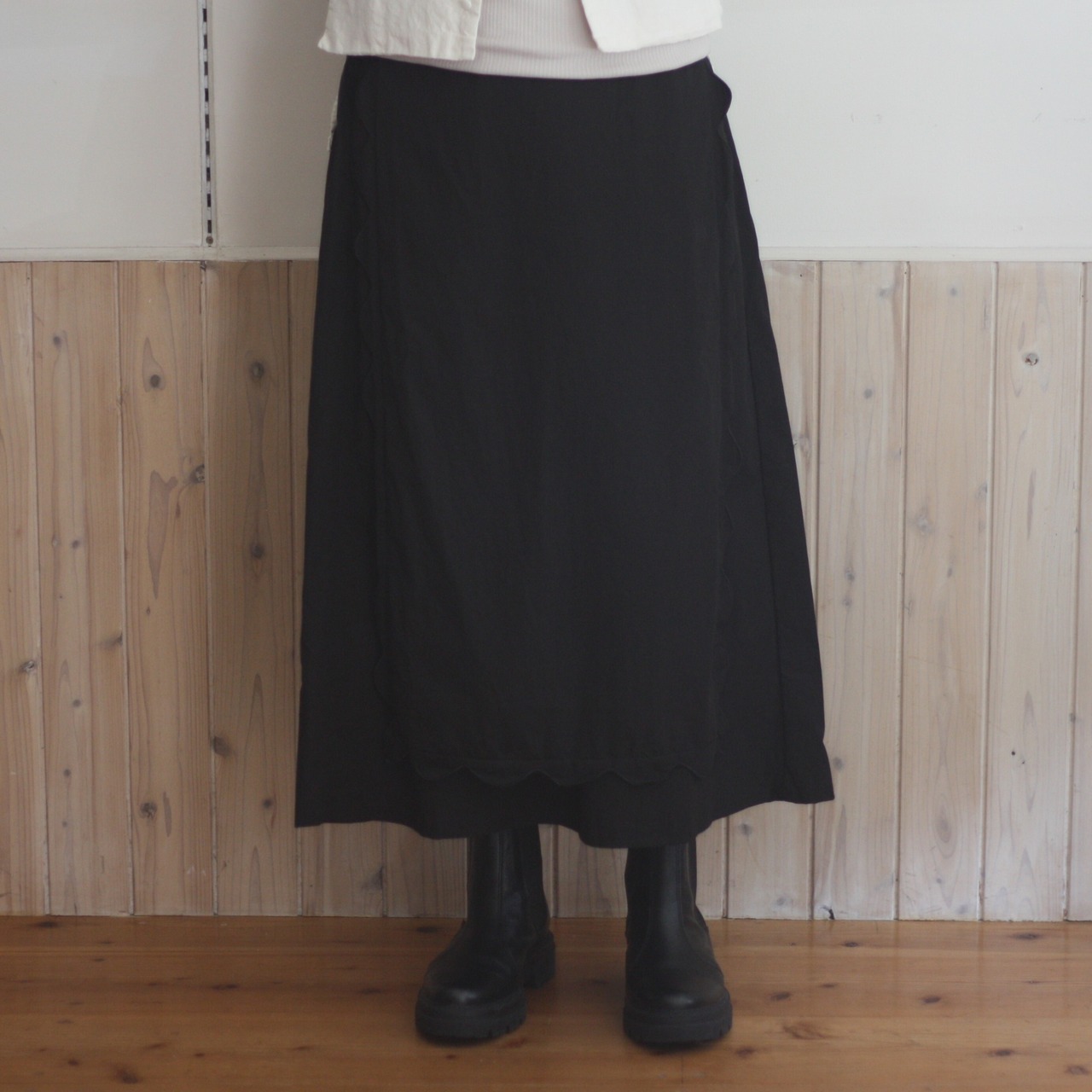 スカラップのエプロンがついたデザインのスカート。