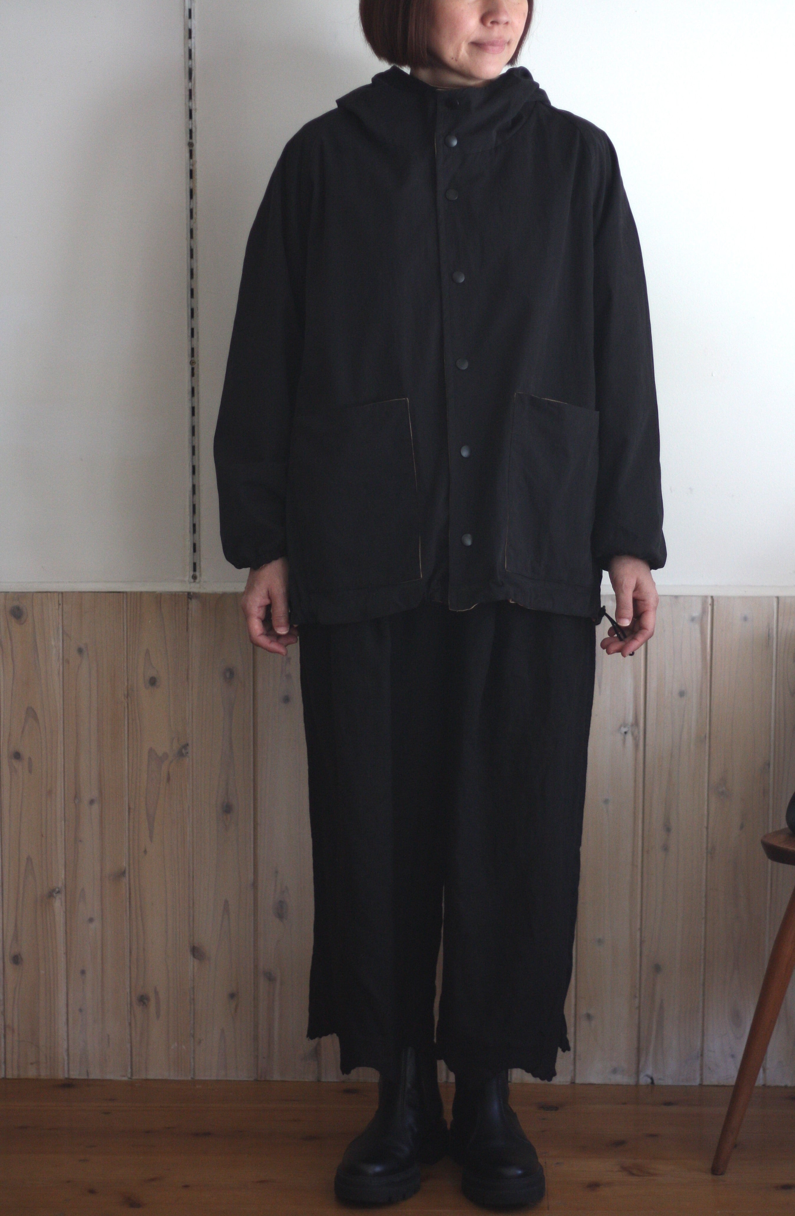 コットンナイロンの軽やかな面(ブラック)と、