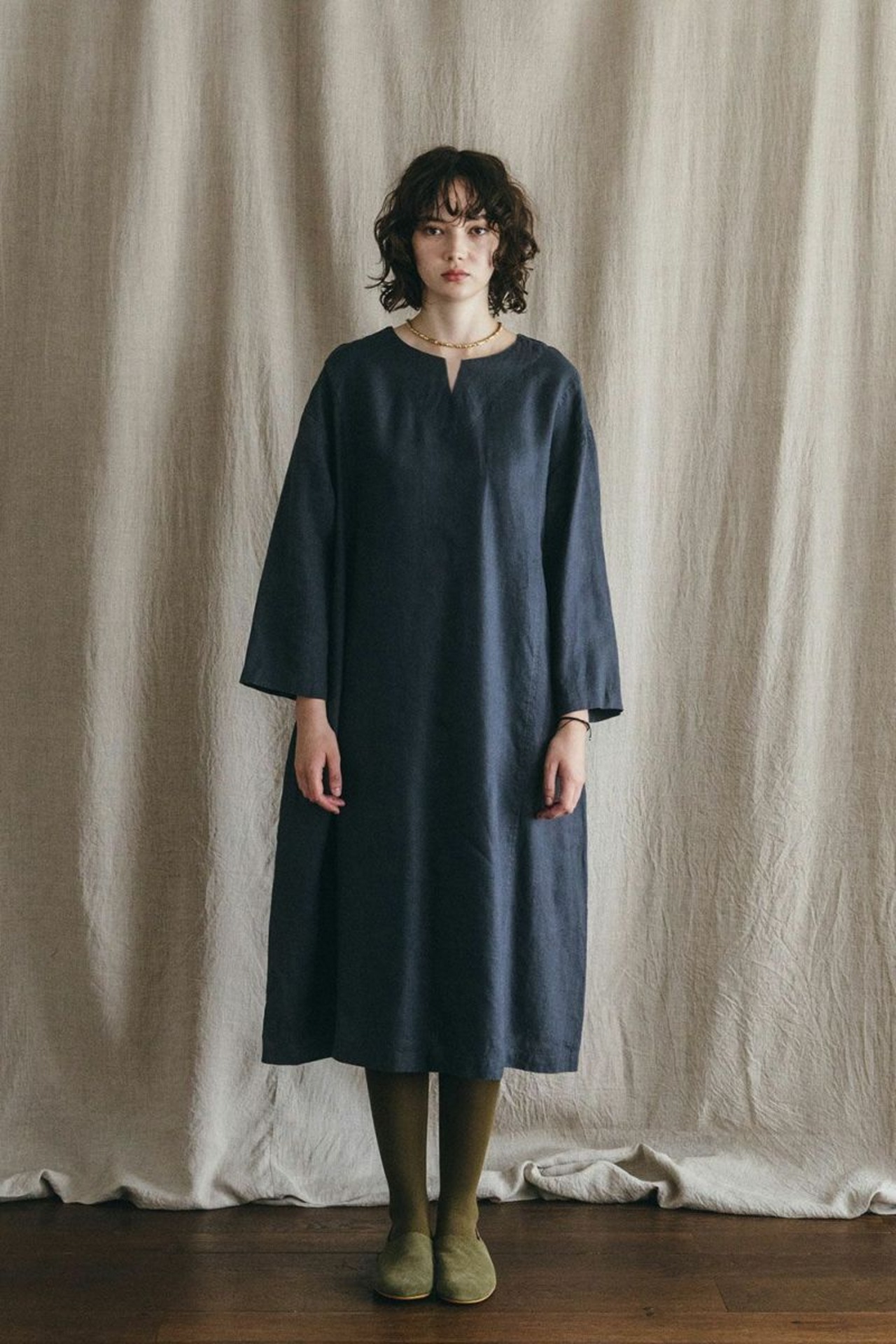 すとんと一枚で着るだけで様になる、ゆったりシルエットのワンピース。