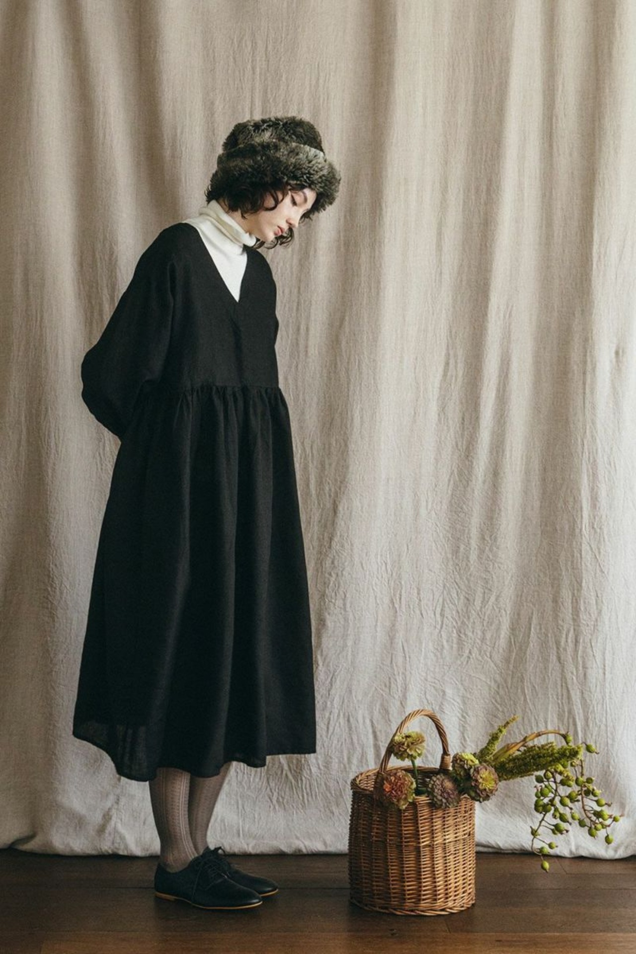 fog linen work フォグリネンワーク メートラ ギャザードレス ブラック