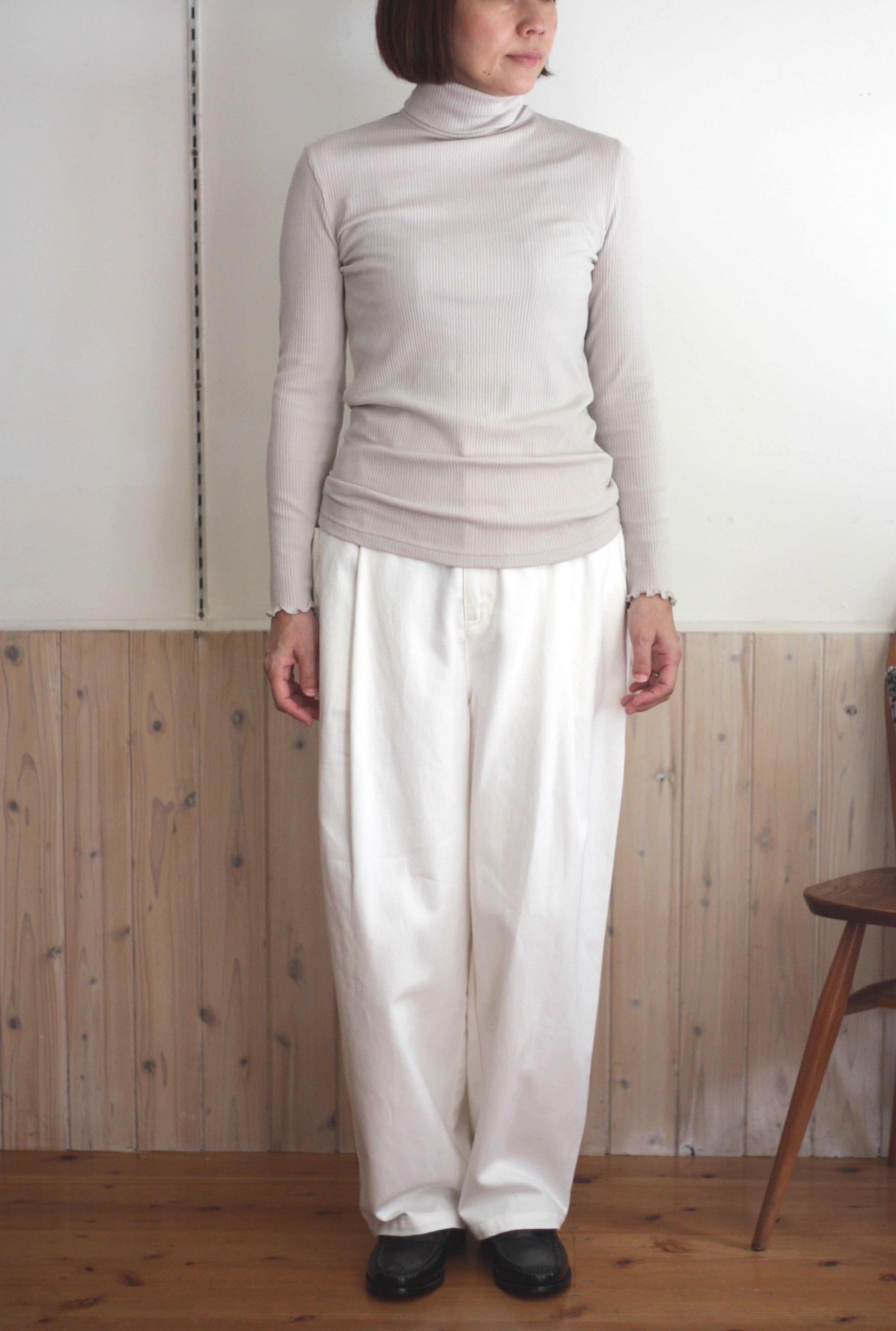 Porter des boutons ポルテデブトン デニムワンタックパンツ オフホワイト
