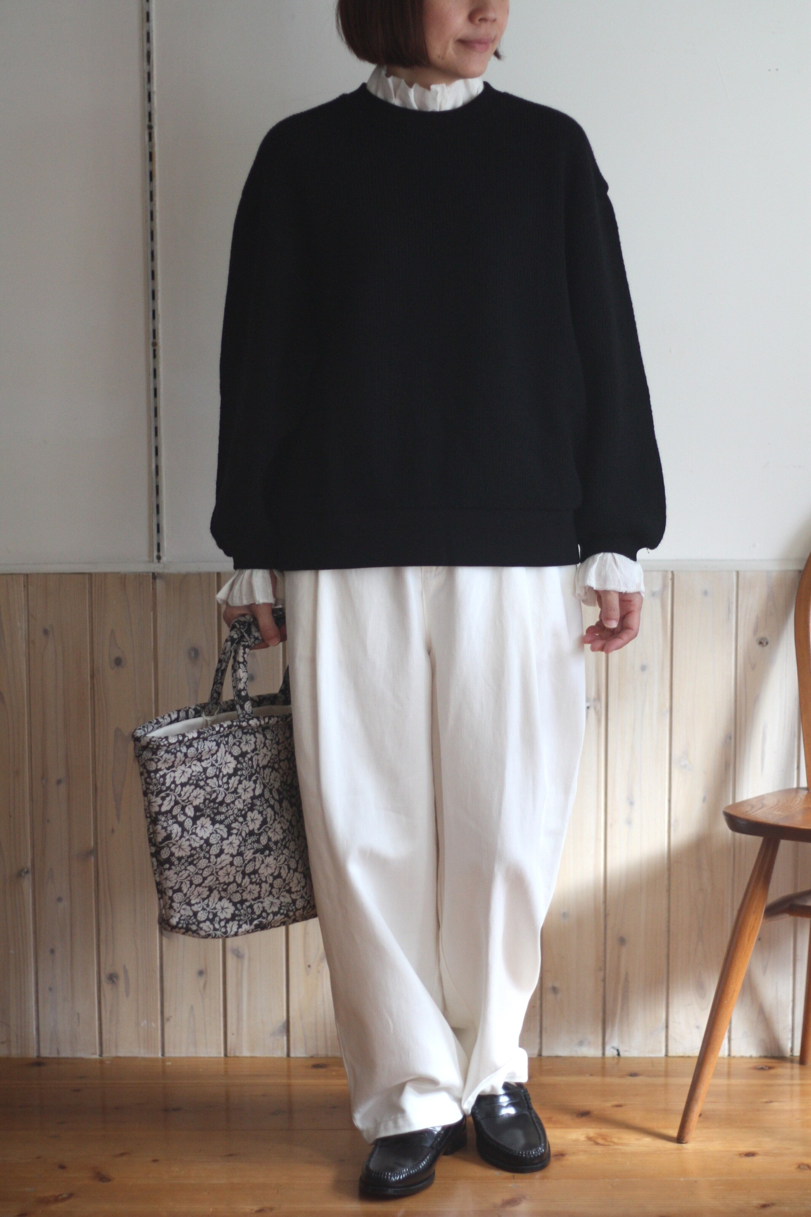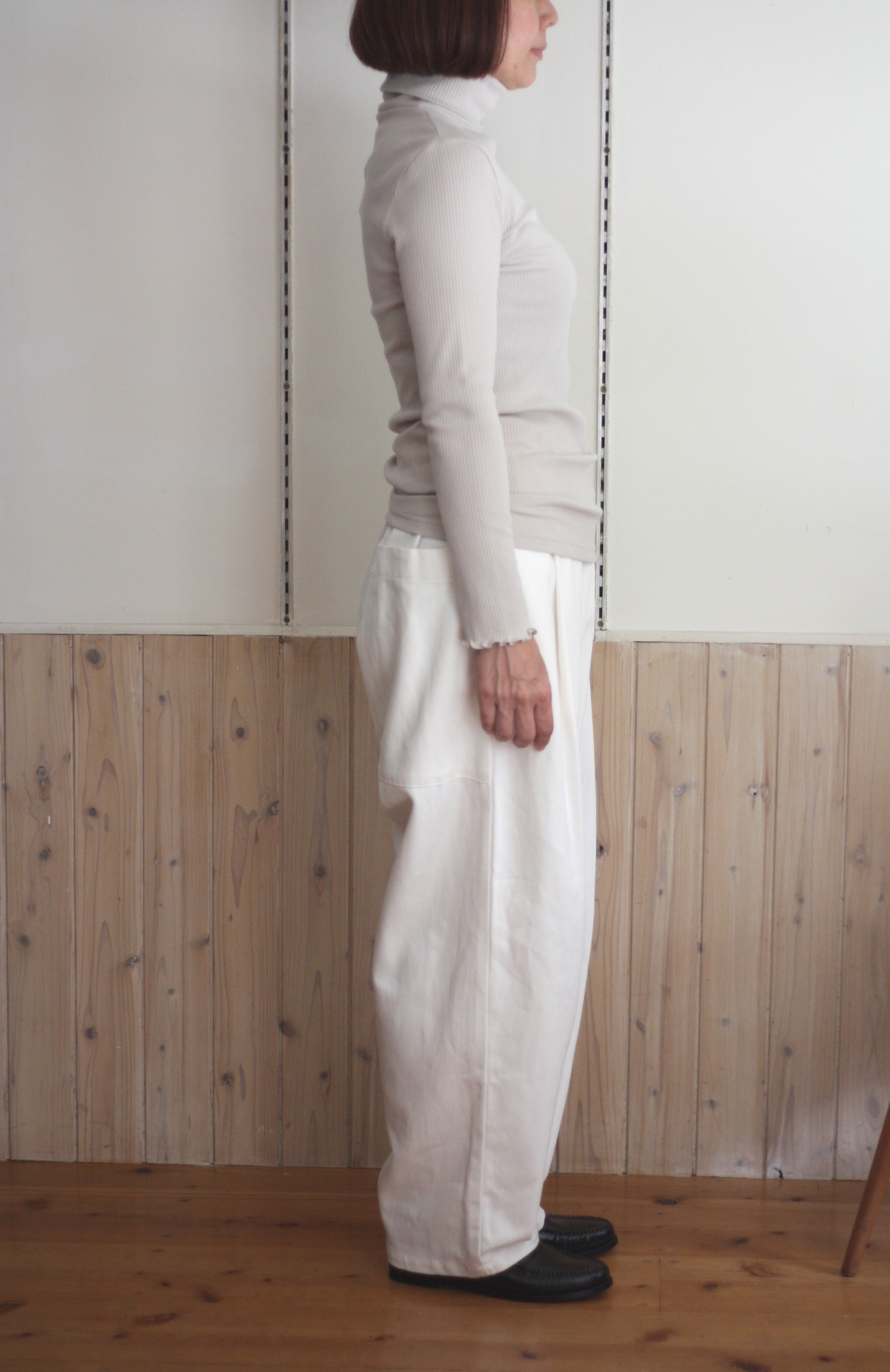 深めのタックをとったコクーンシルエットのパンツのご紹介です。