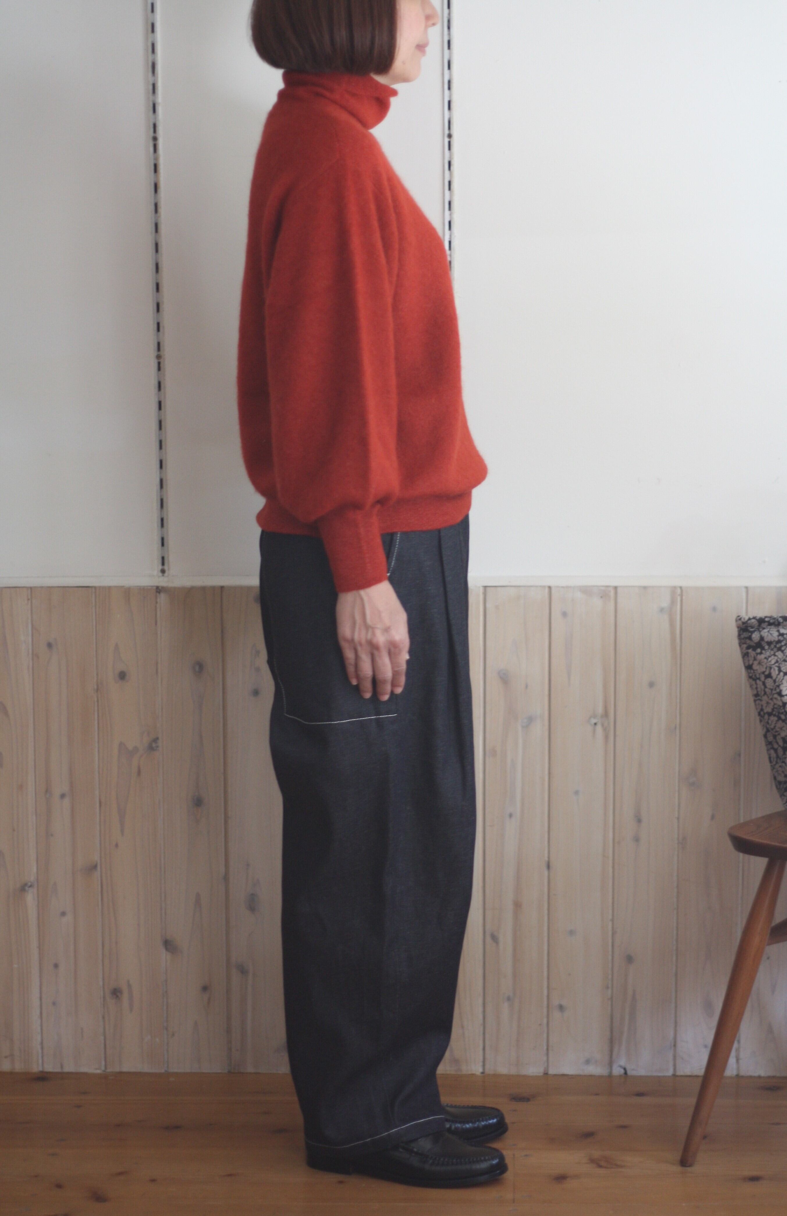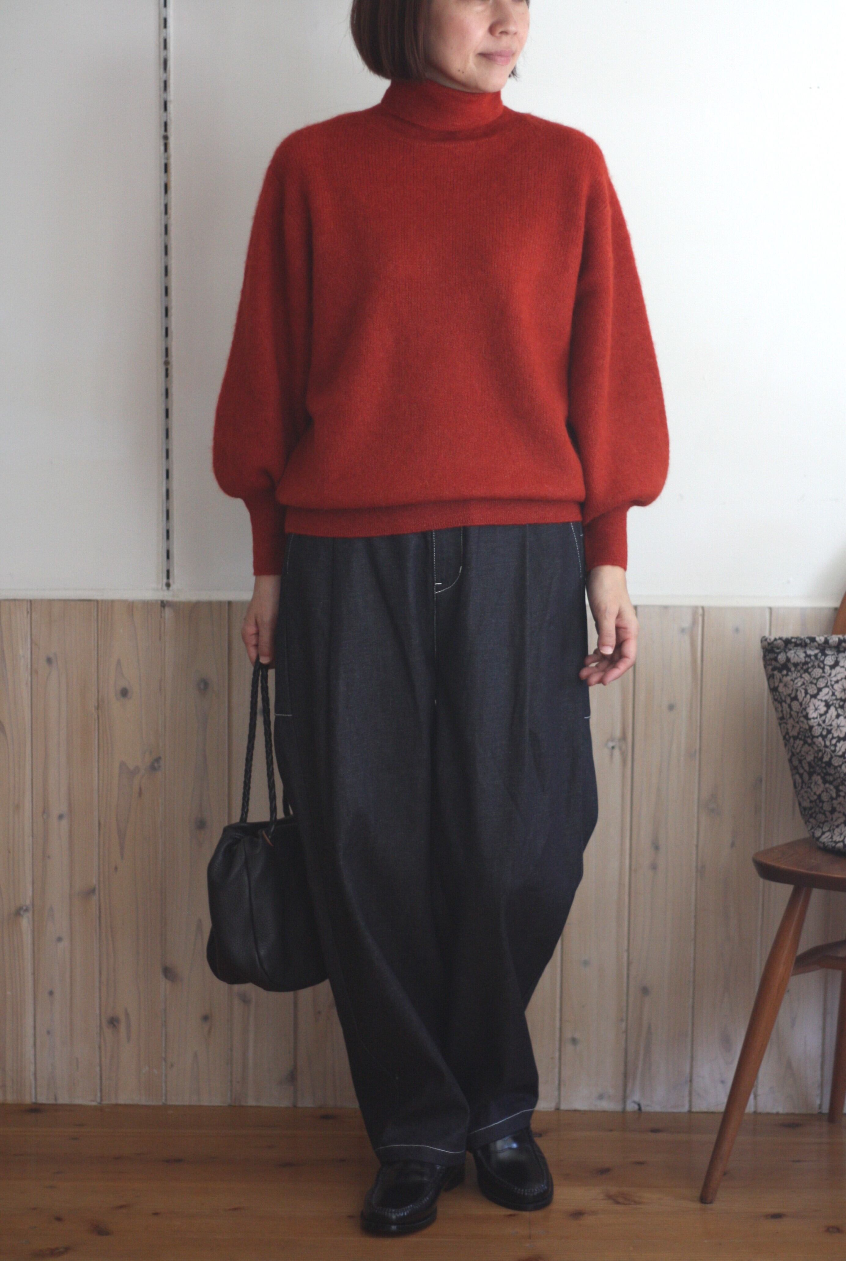 Gauze# ガーゼ ギャザースリーブアルパカニットタートルプルオーバー オレンジ