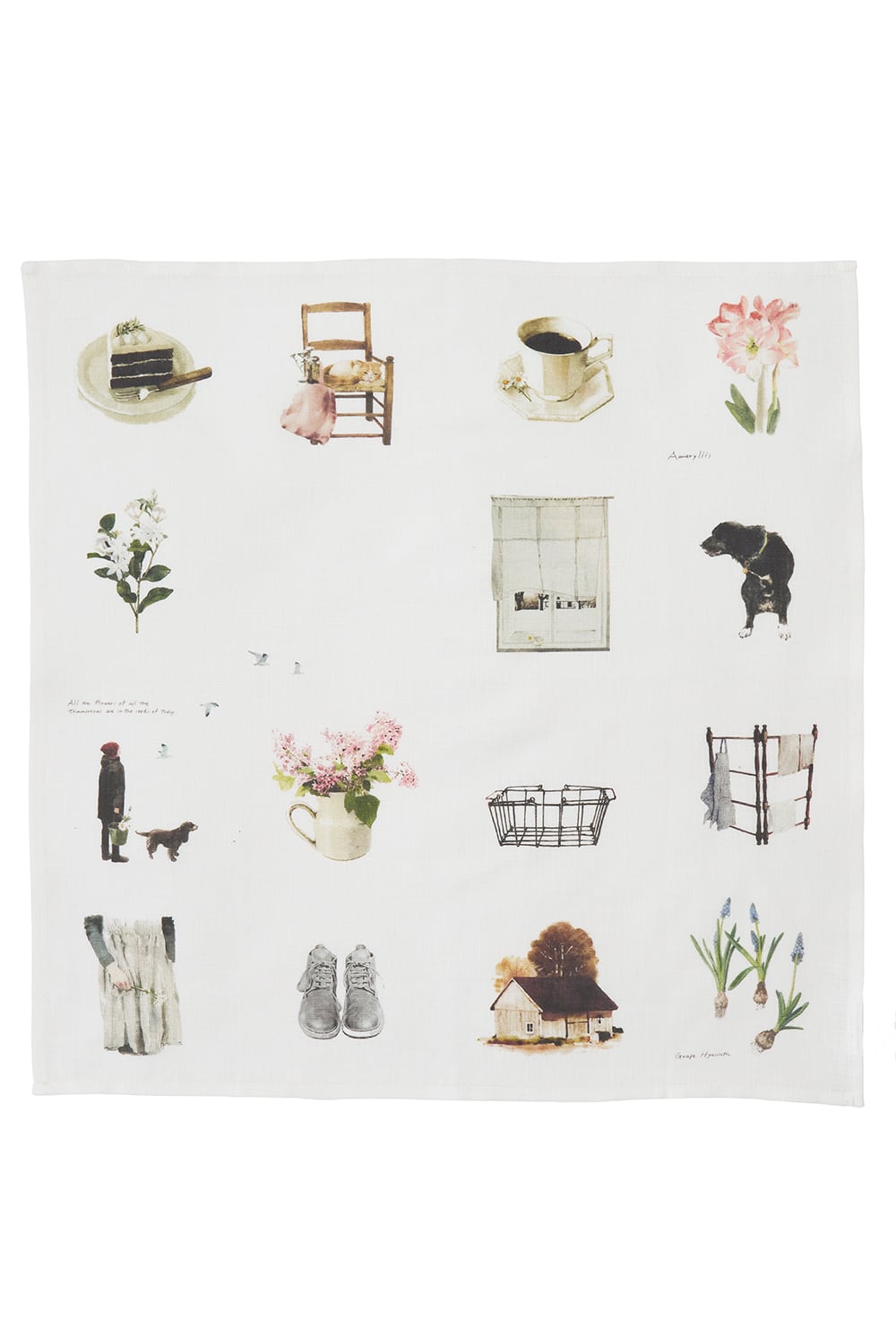 荻原美里さんの描く、静かで美しい世界観の絵をリネン生地にプリントしたハンカチに新しく「花との暮らし」が加わりました。