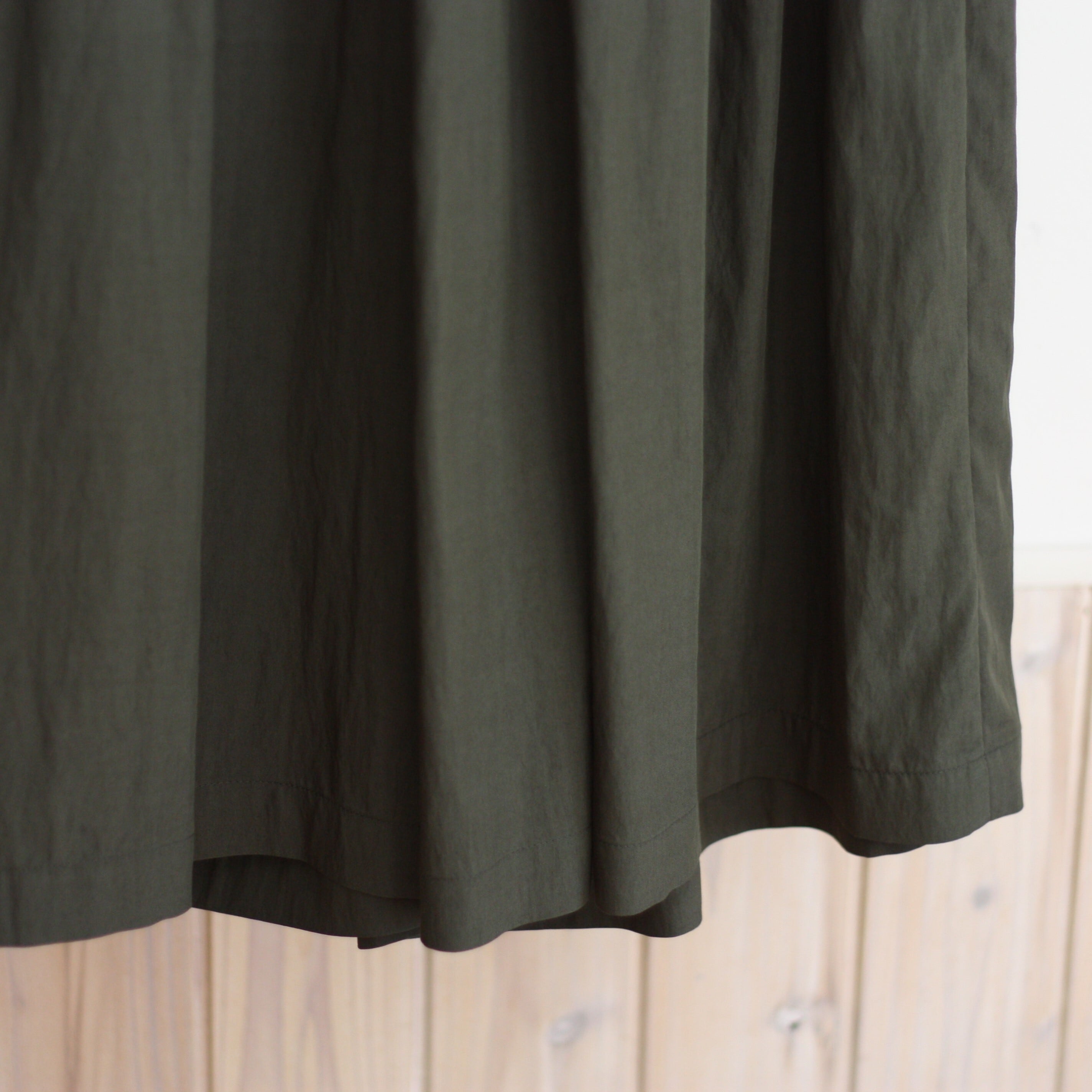 レーヨンのテロンとした質感と、ナイロンのほどよいハリ感が合わさり、軽やかで上品な印象に仕上がっています。