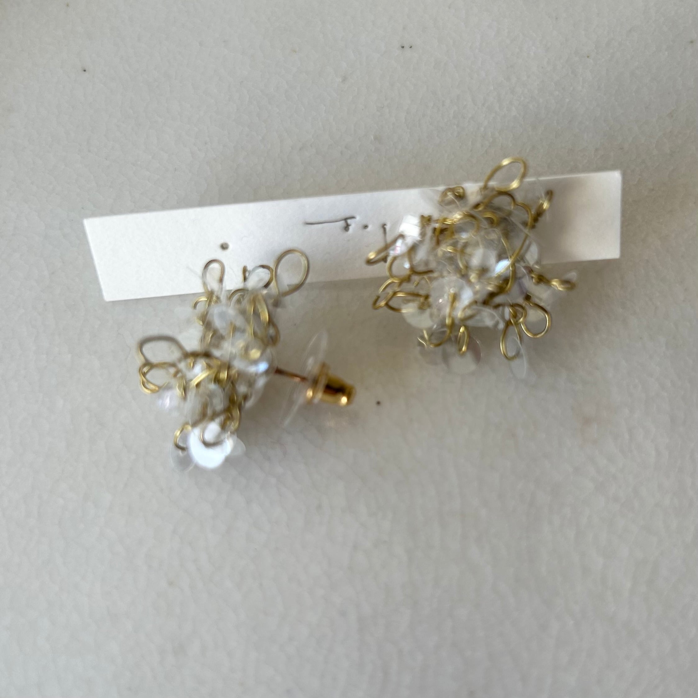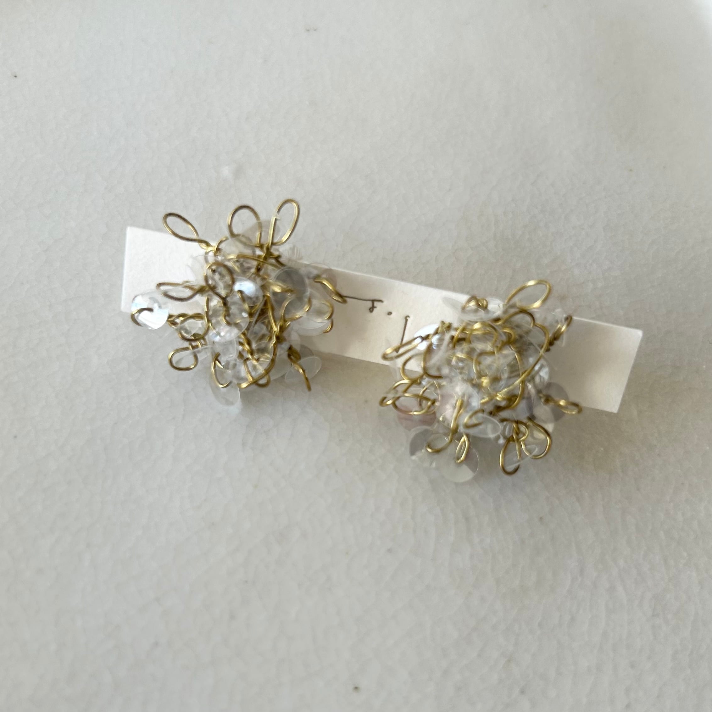 透明のフランス産スパンコールをゴールドの真鍮ワイヤーで仕立てたピアス