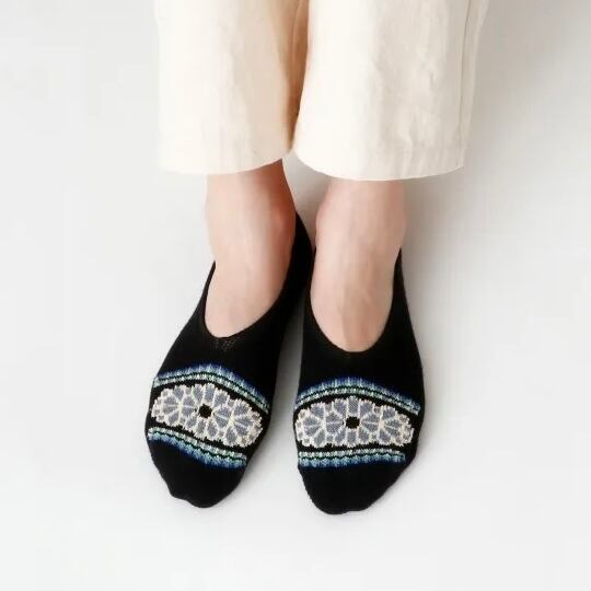 履き口はゴムで編み立て、優しいフィット感と脱げにくさを両立させました。