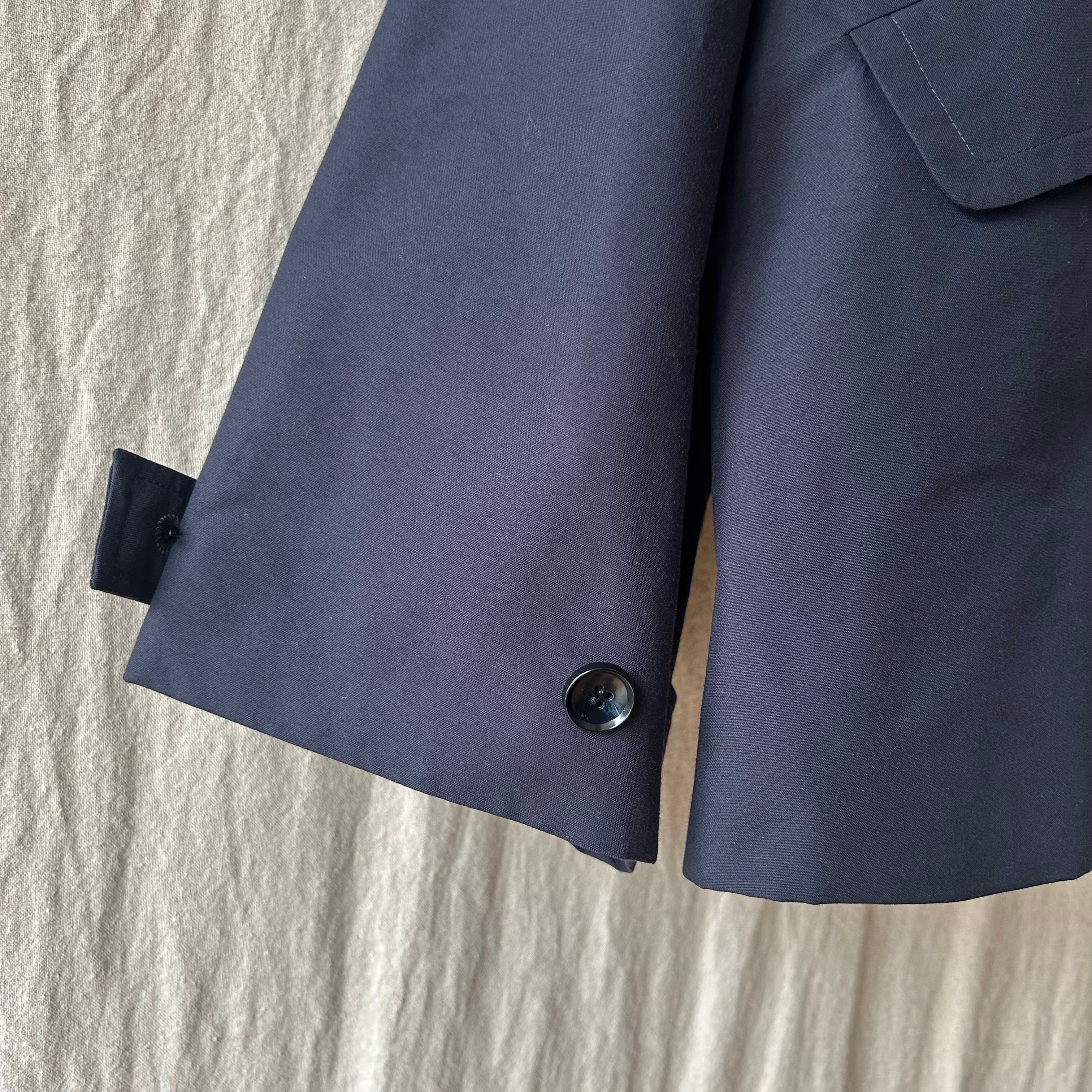 袖口にはタブ付きデザインを採用し、ボタンで袖口幅の調整が可能。