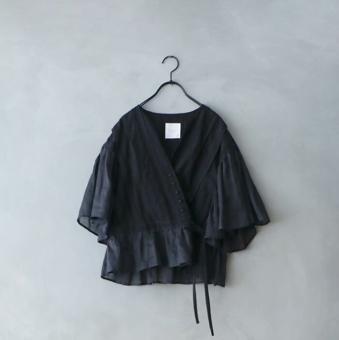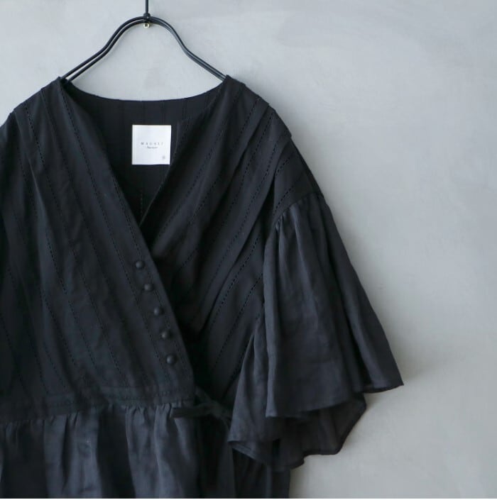 MAGALI マガリ インディゴリネンカシュクールブラウス ブラック