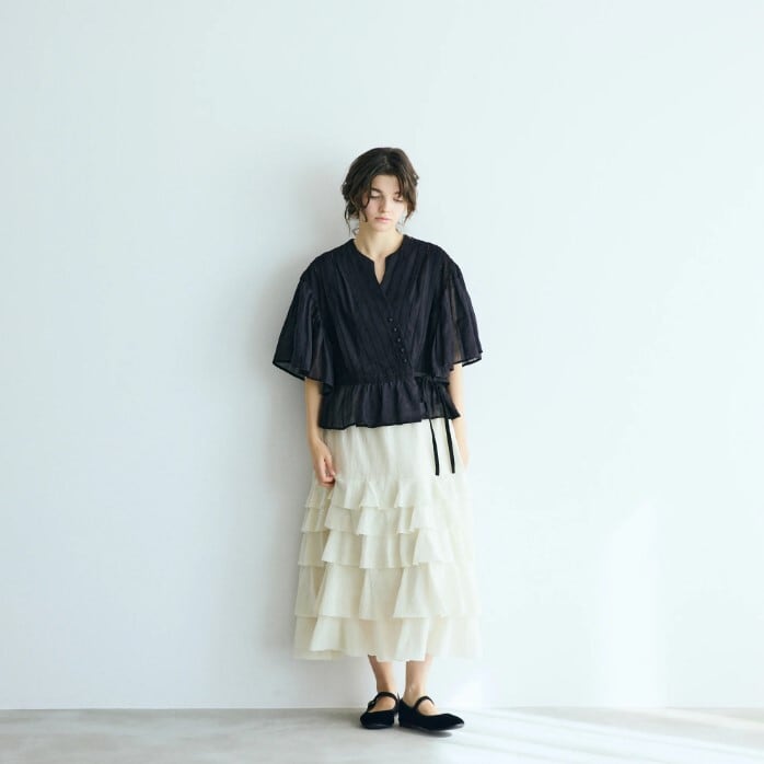 たっぷりとギャザーを寄せた袖は、動くたびにやわらかく揺れ、さりげなく所作を引き立てます。