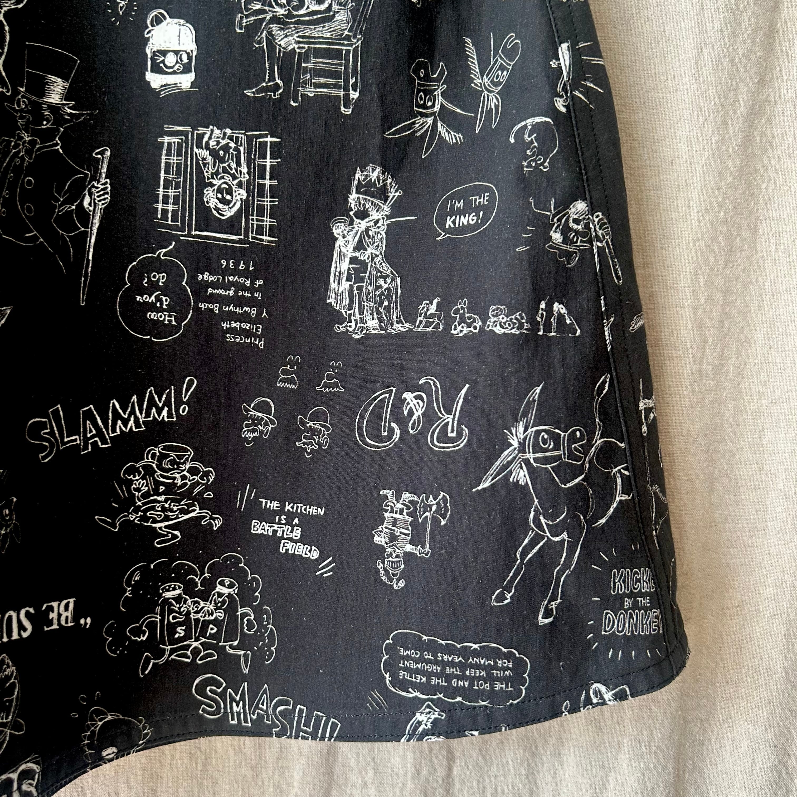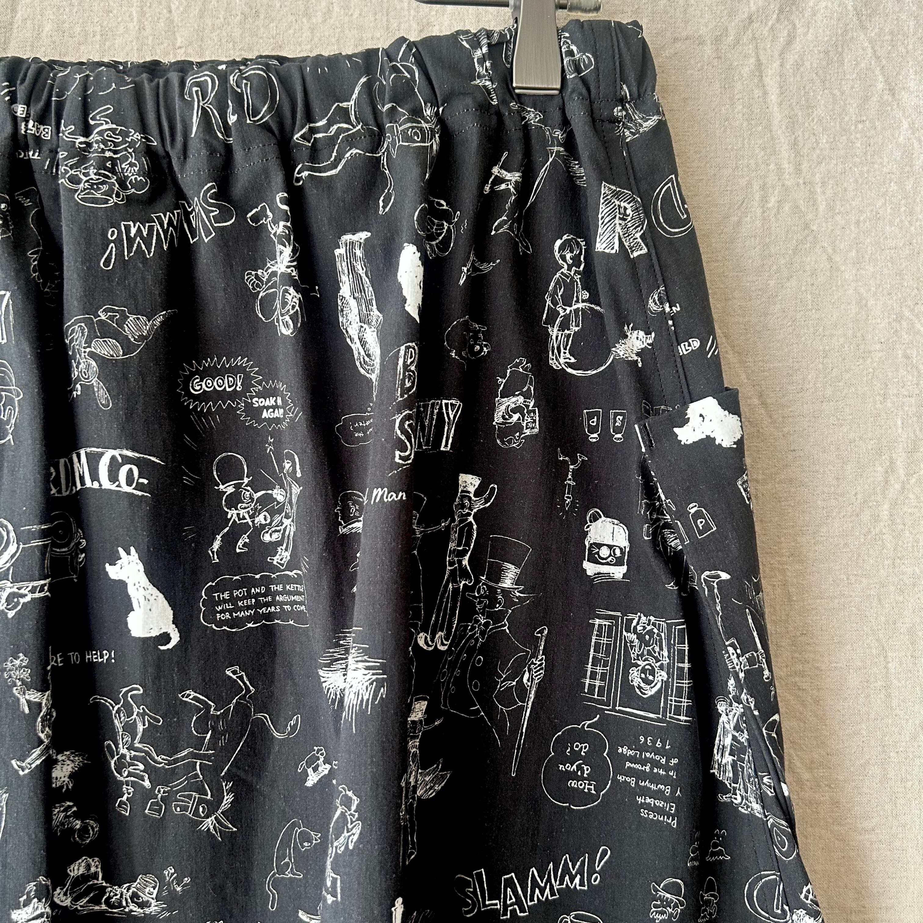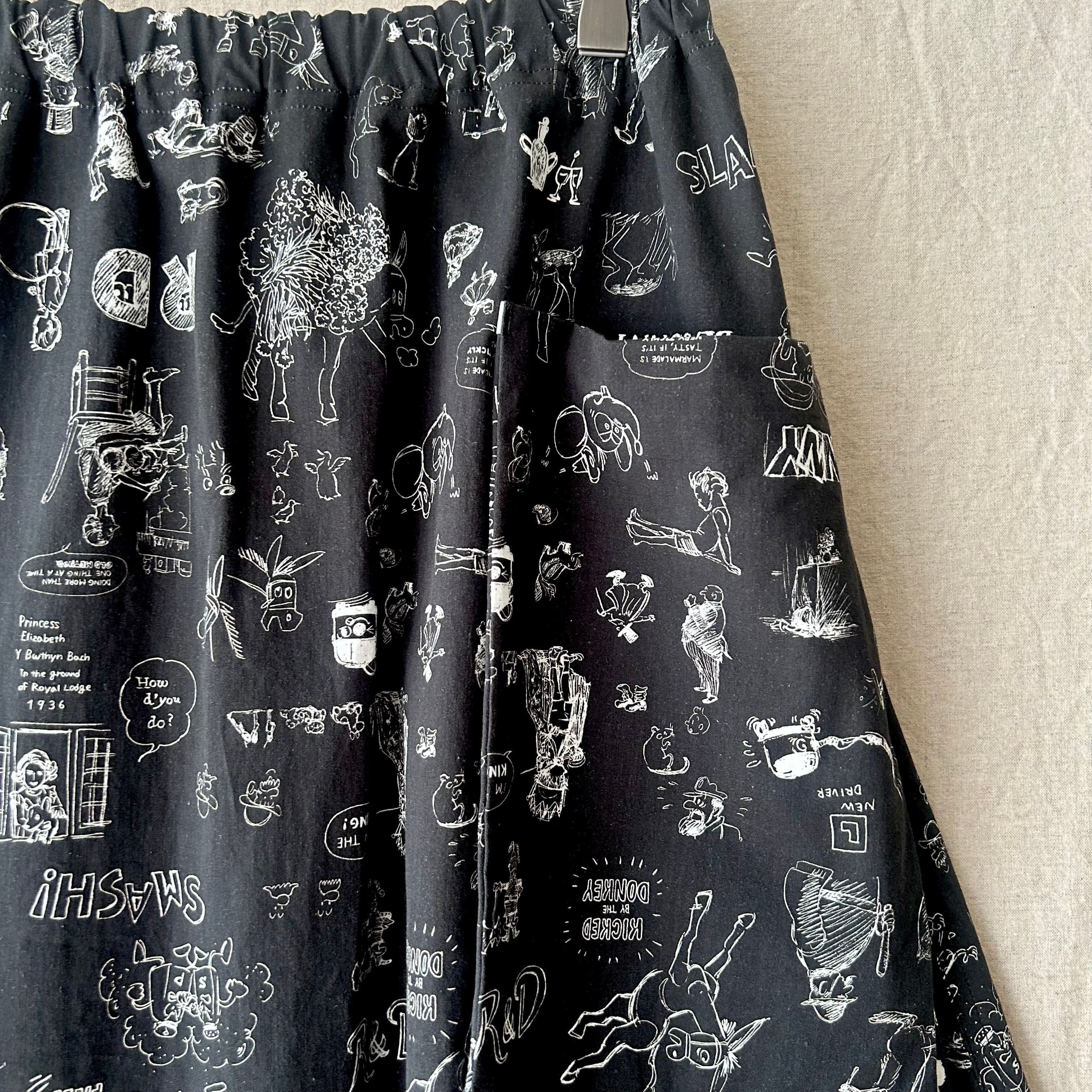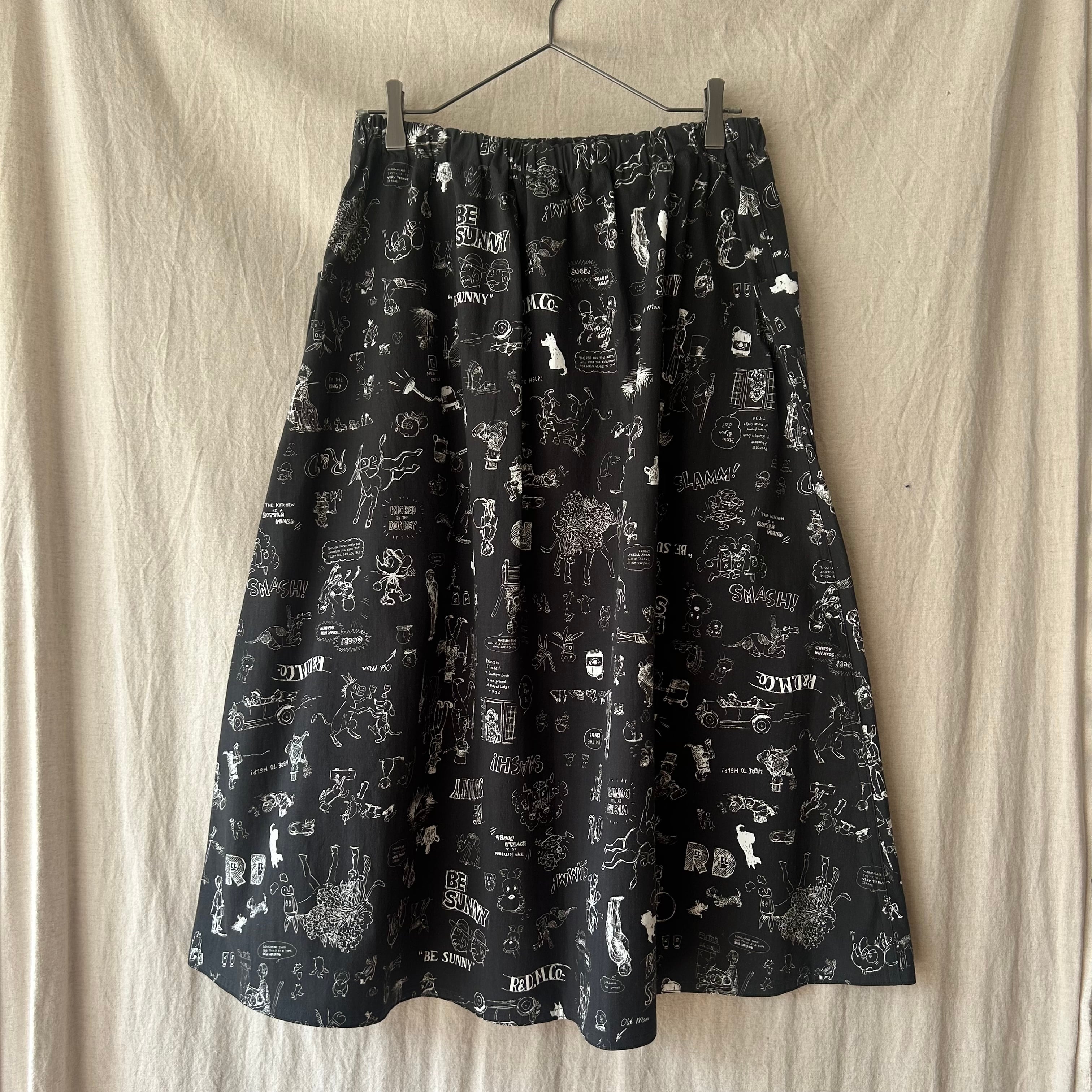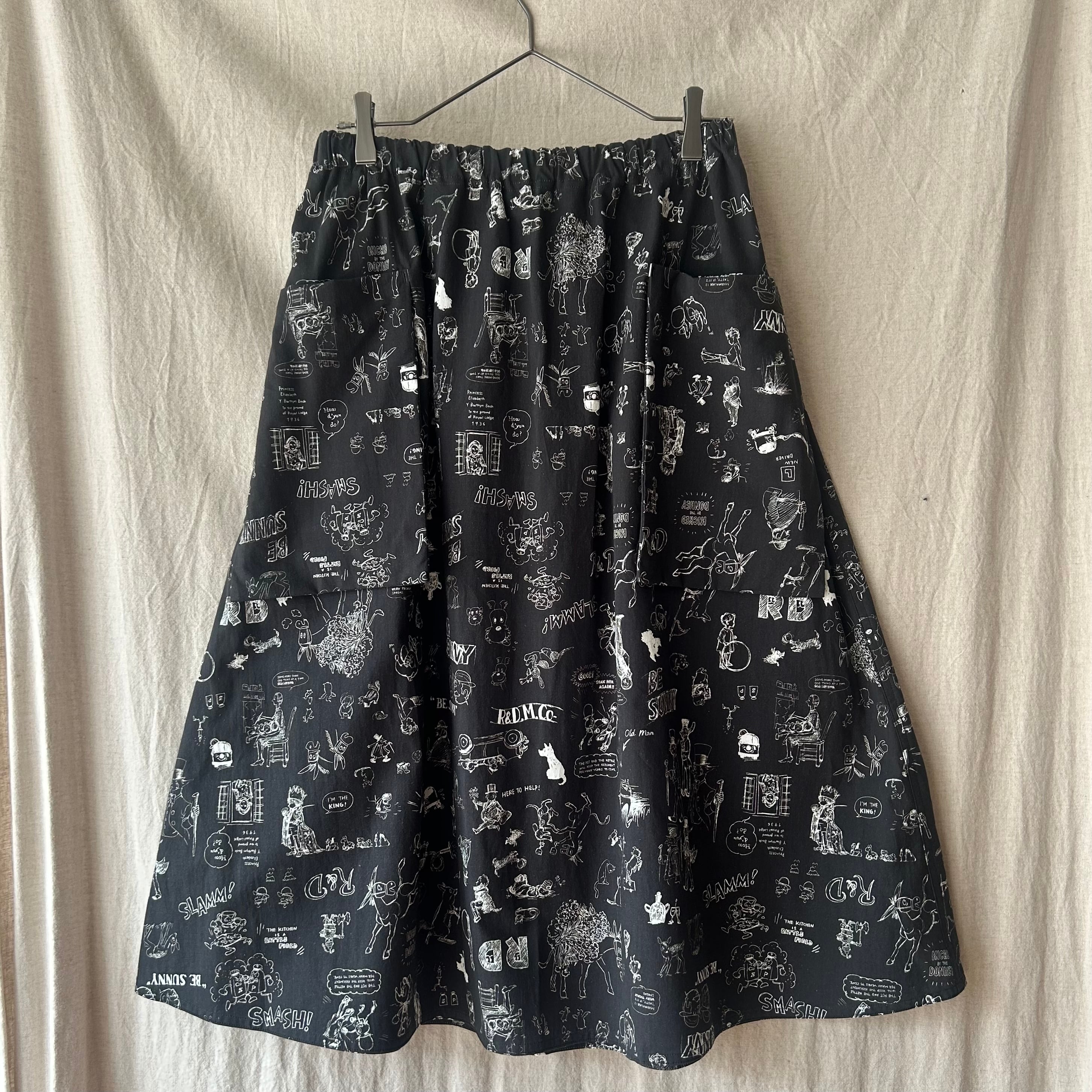 手描きのスケッチのような柄が印象的なドグラフィティポケットスカート。