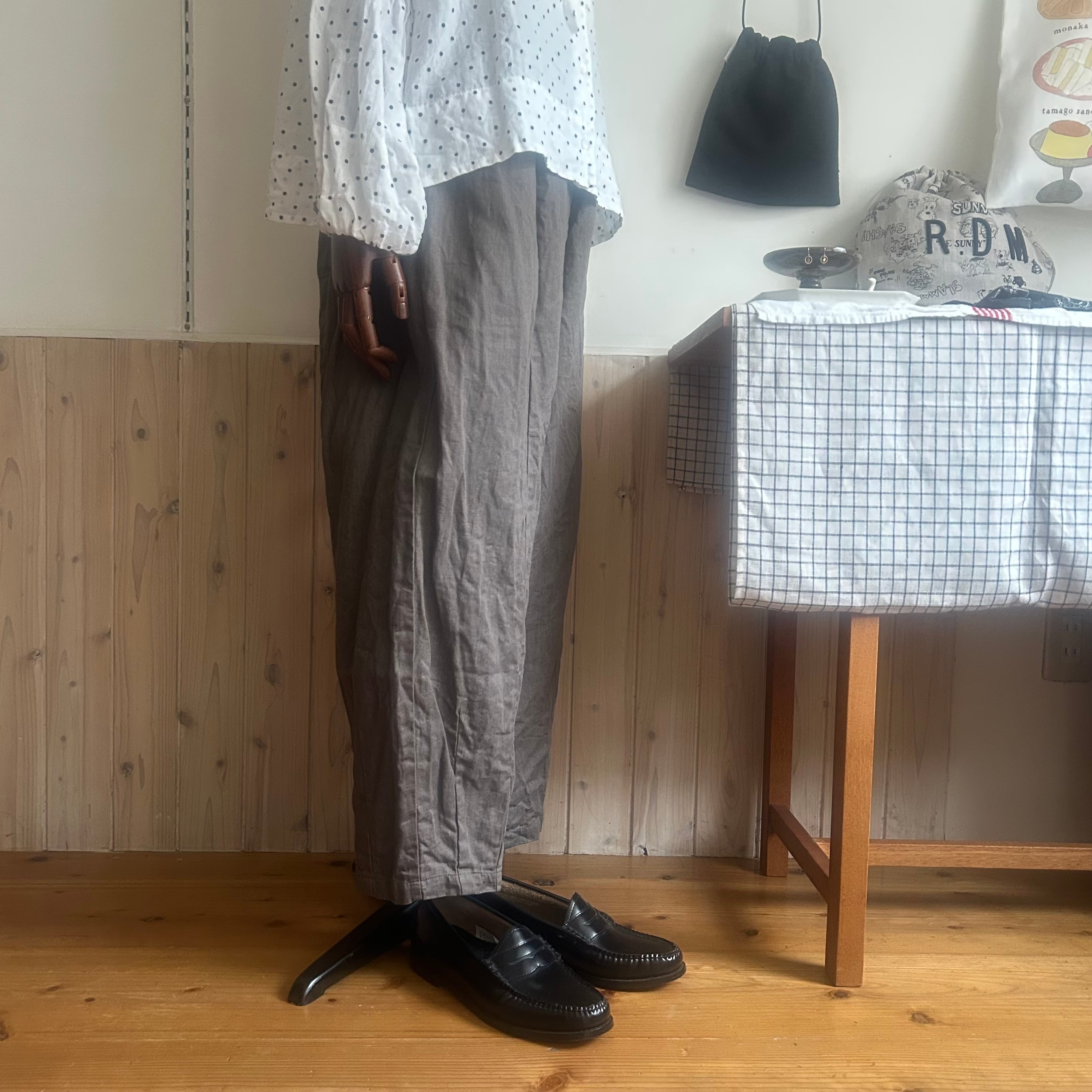 コットンにリネンをブレンドした生地は、軽やかさと程よいコシを兼ね備え、日常に取り入れやすい一本です。