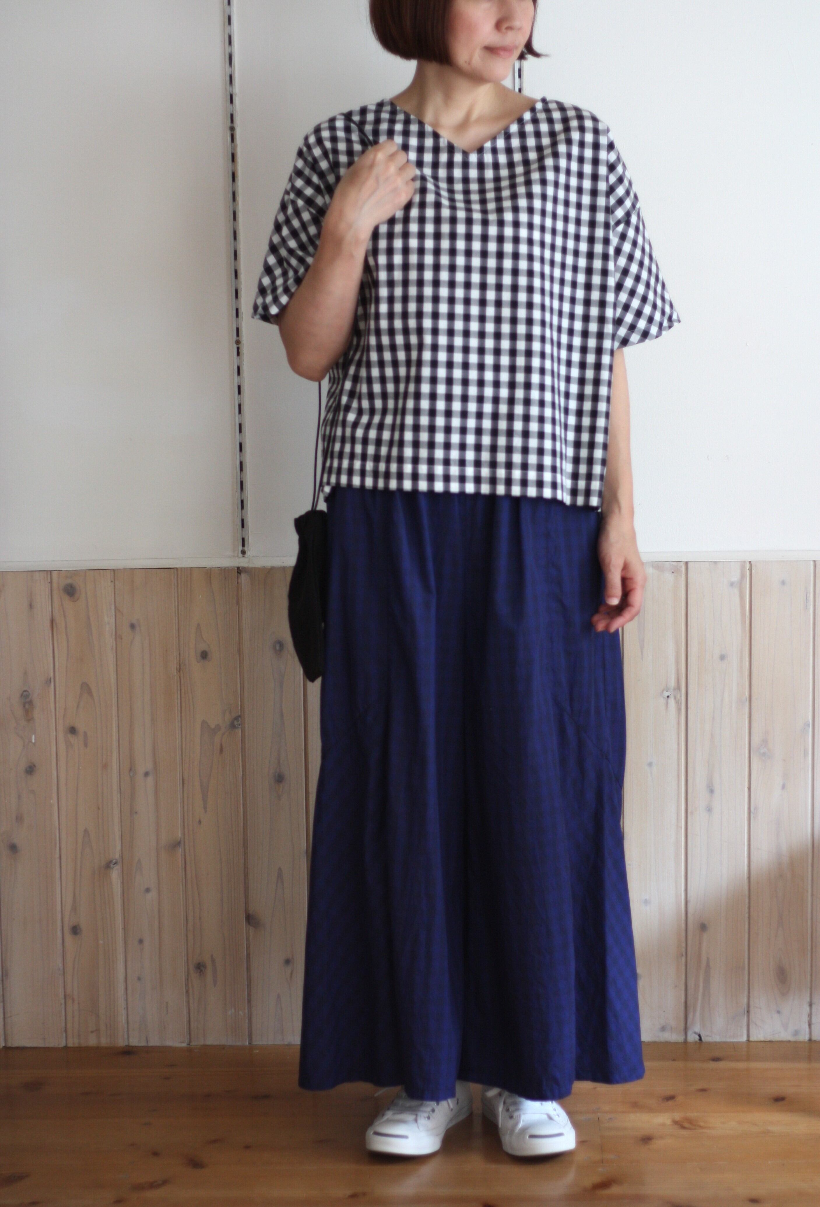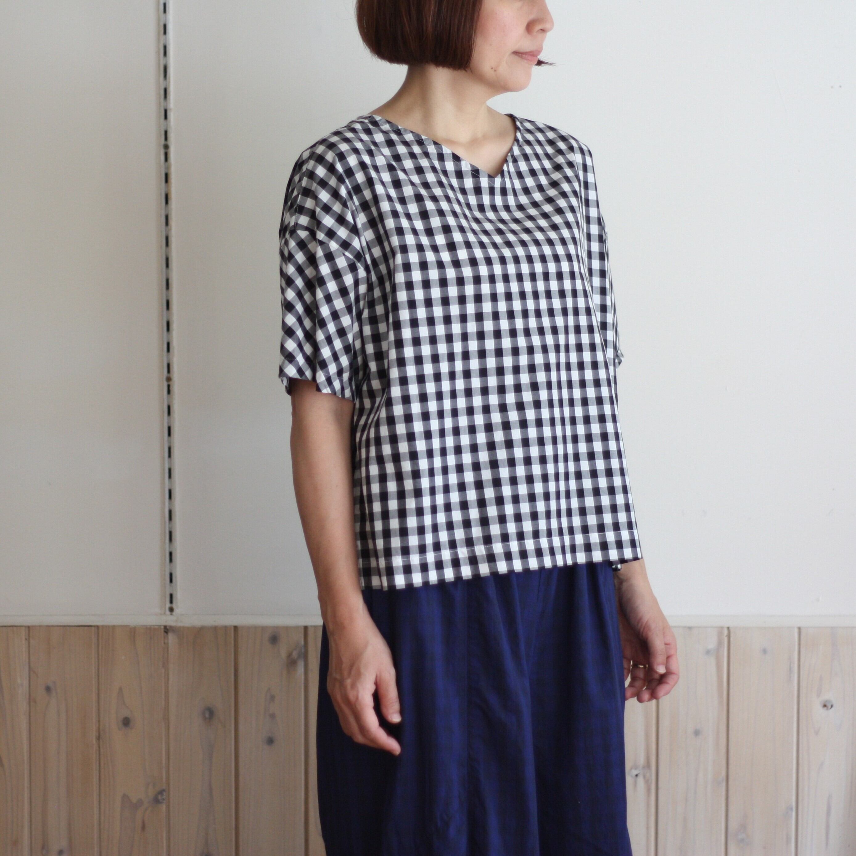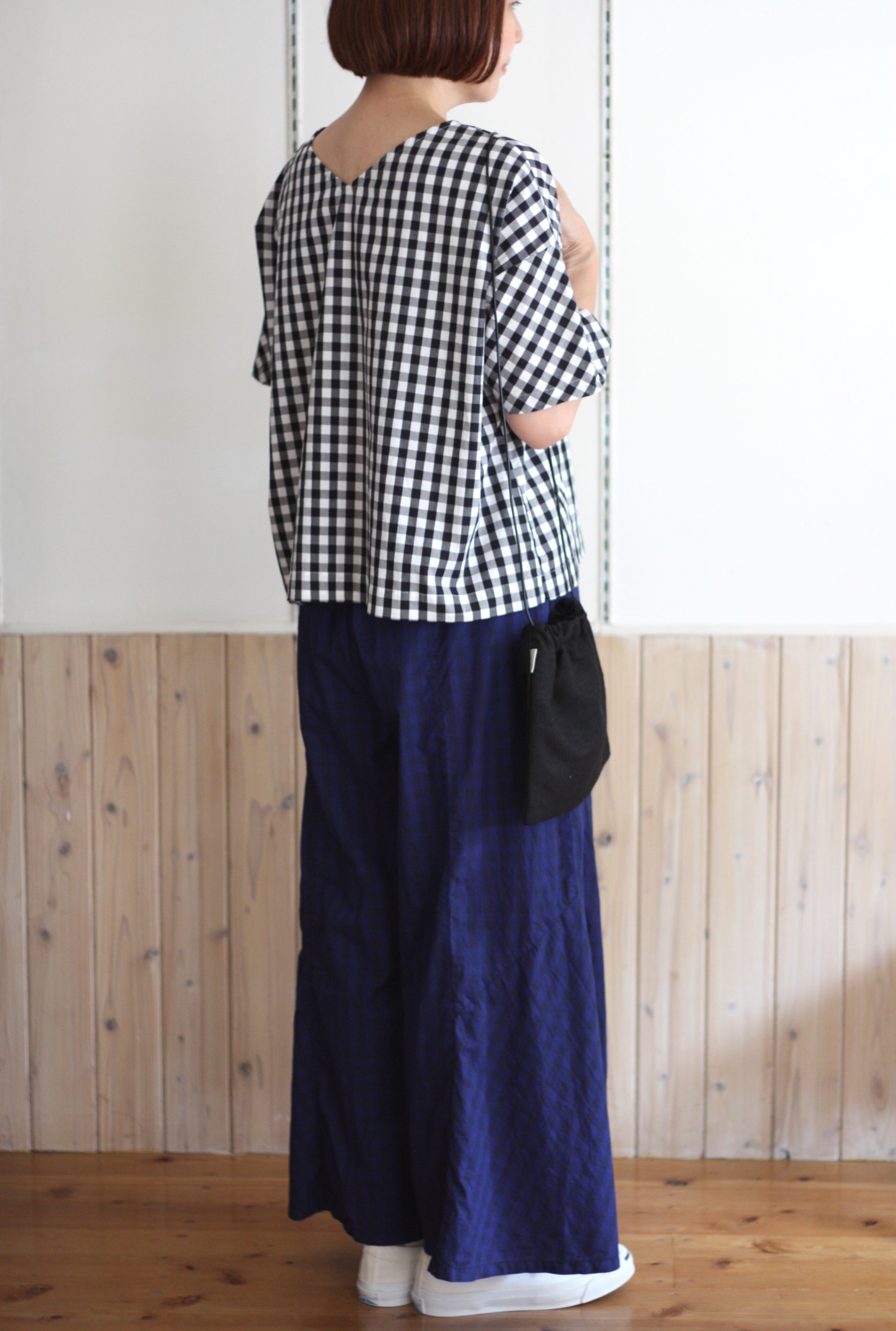 江戸炊きのギンガムチェック生地を使用したブラウス。