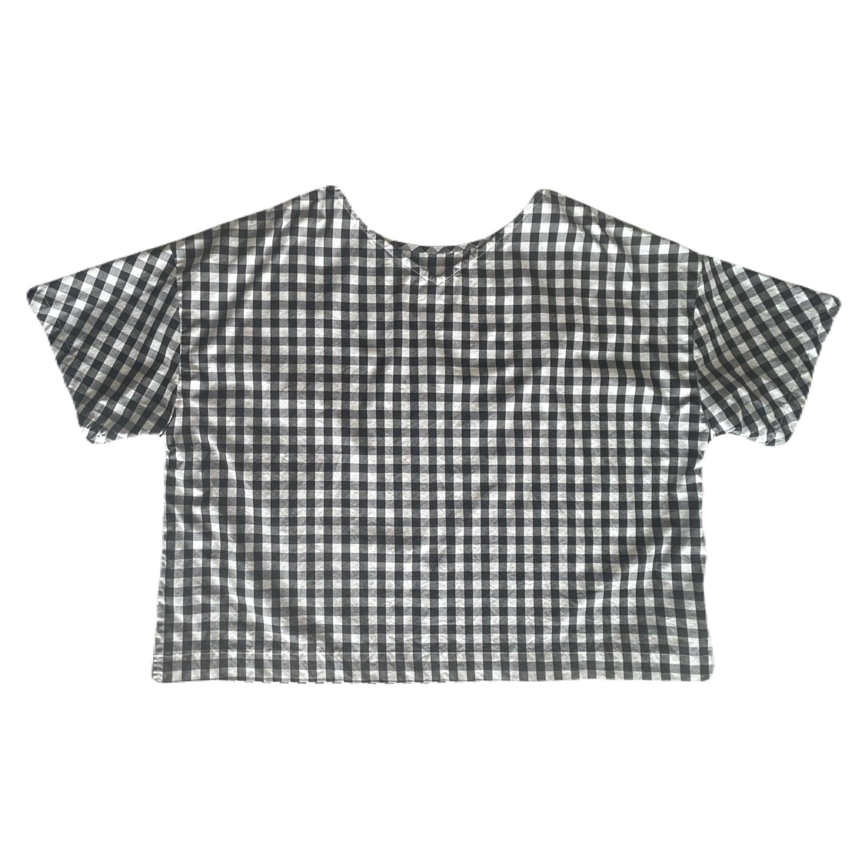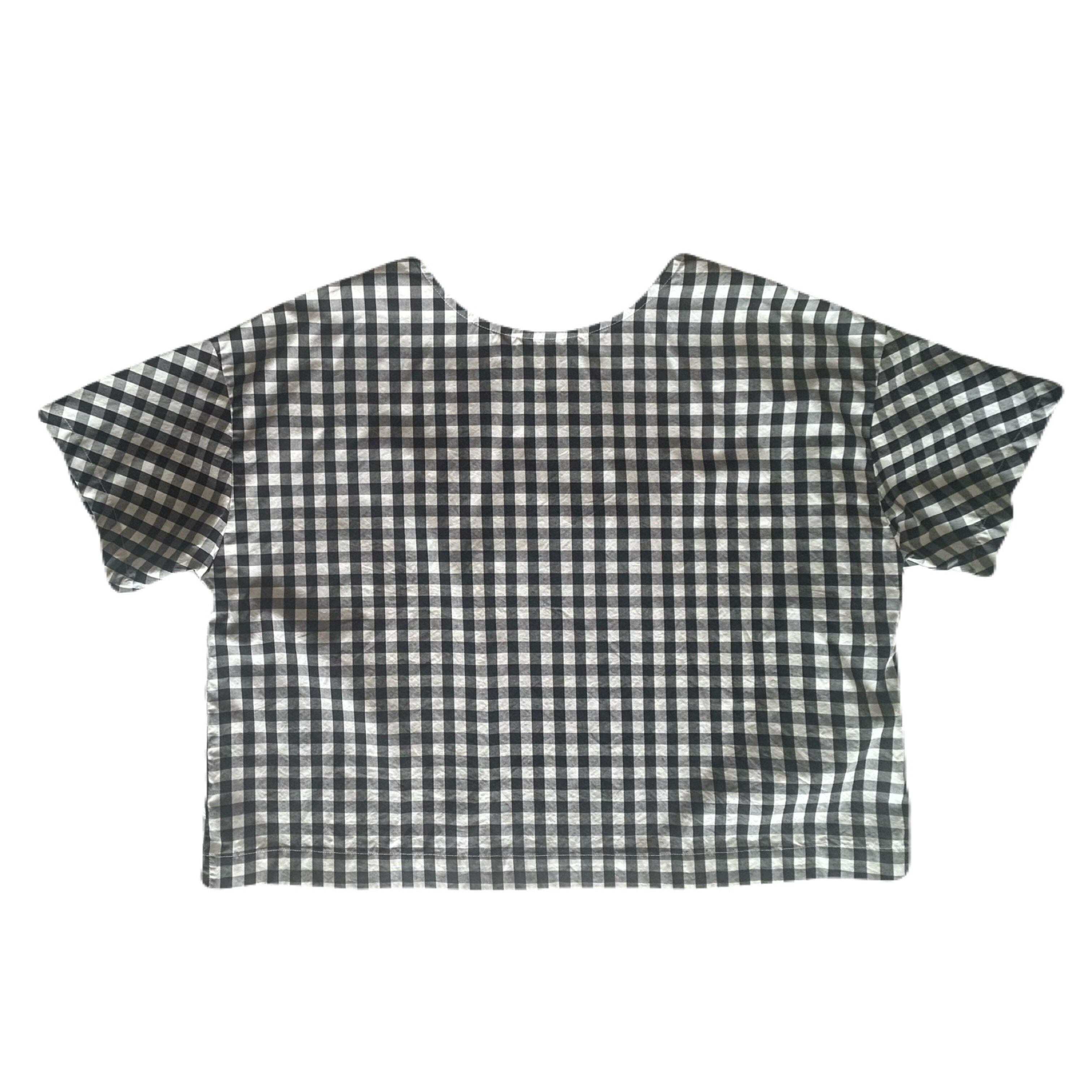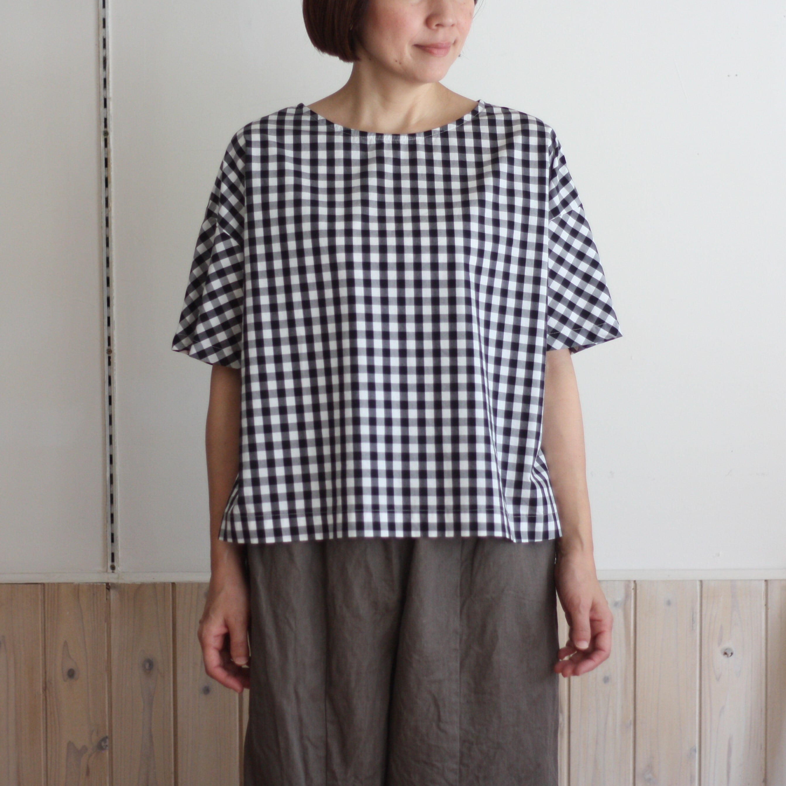 raha ギンガムチェックスクエアブラウス シロ×クロ