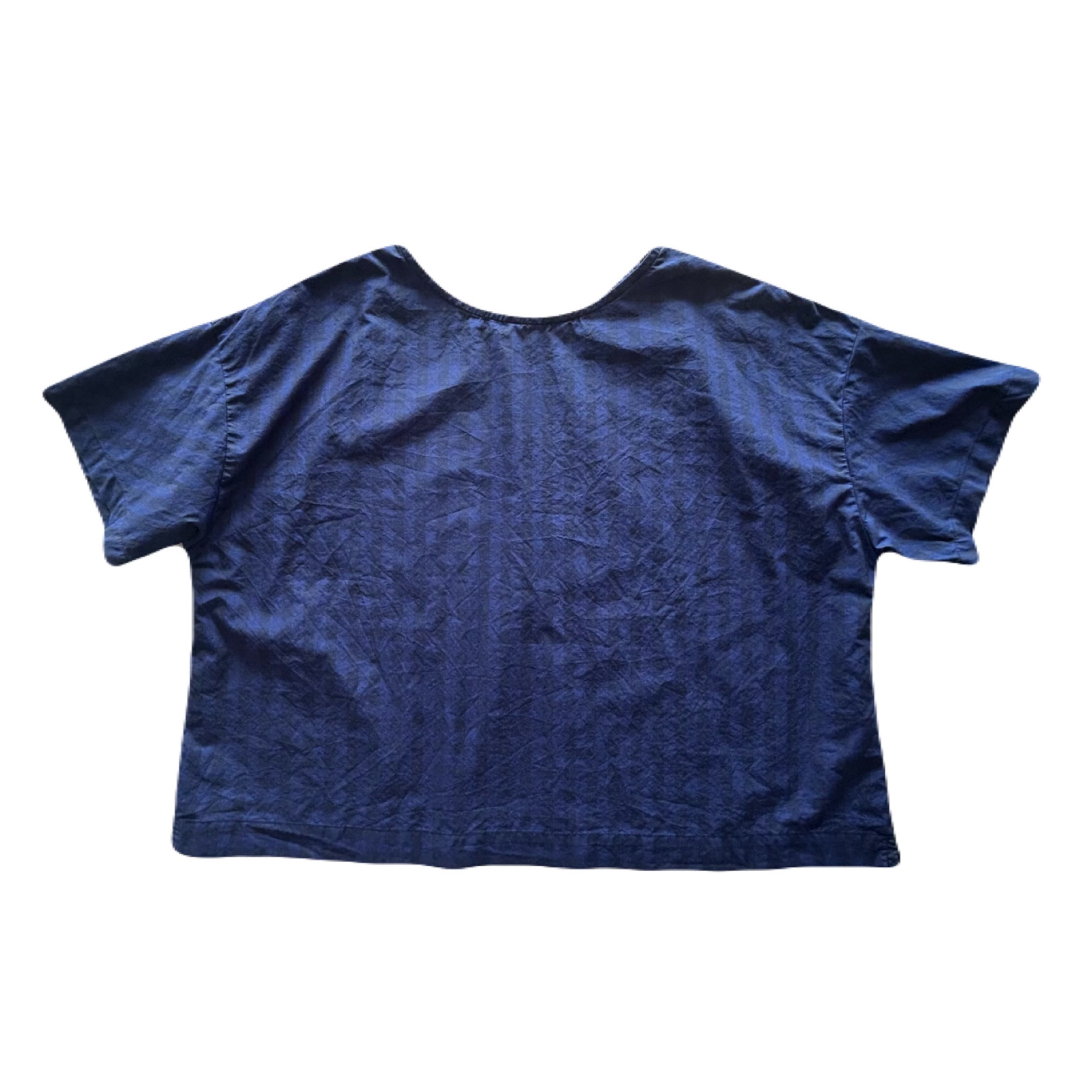 ブラウスは被りタイプで、前はクルーネック、後ろはVネックの2way仕様。