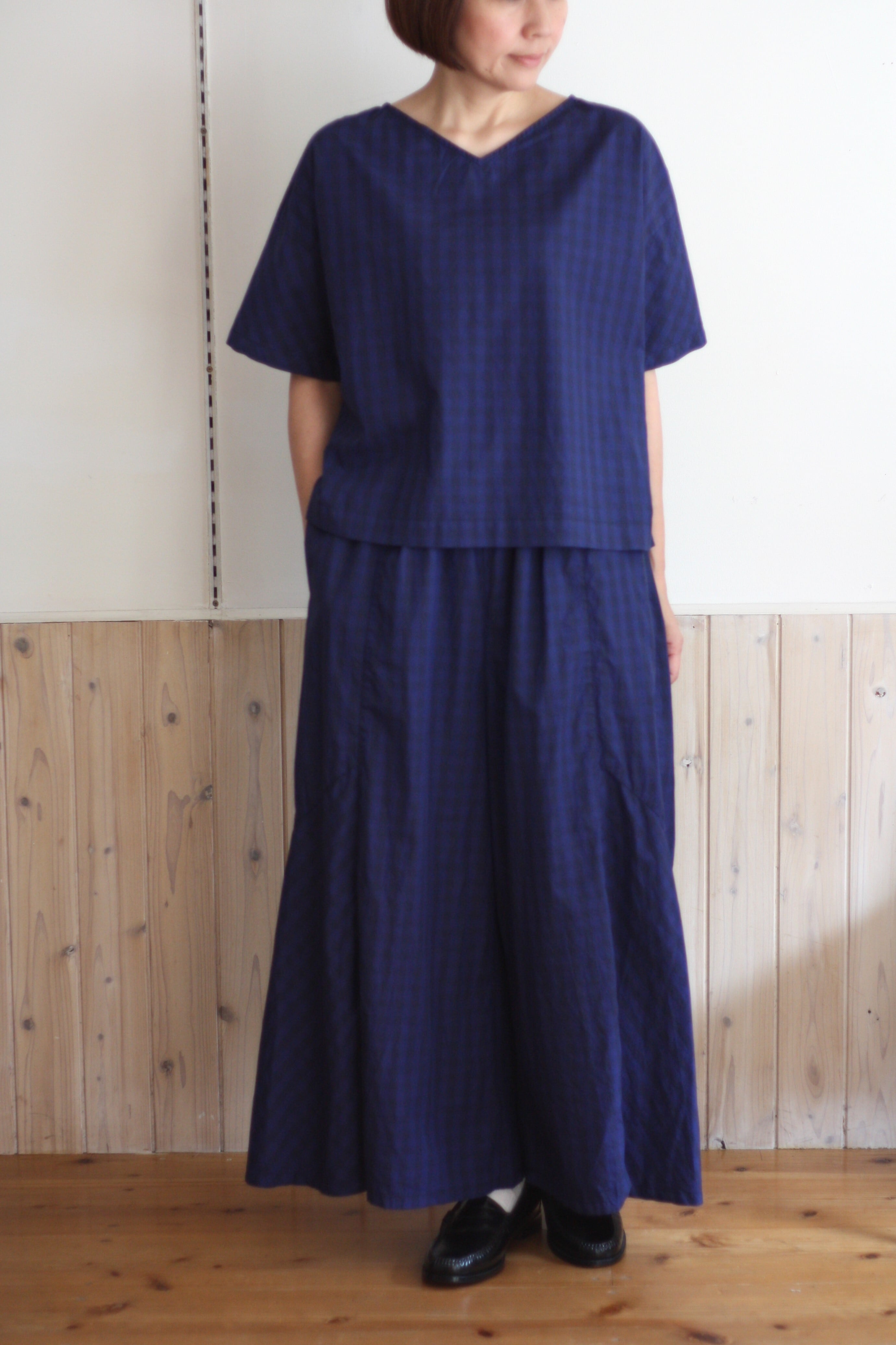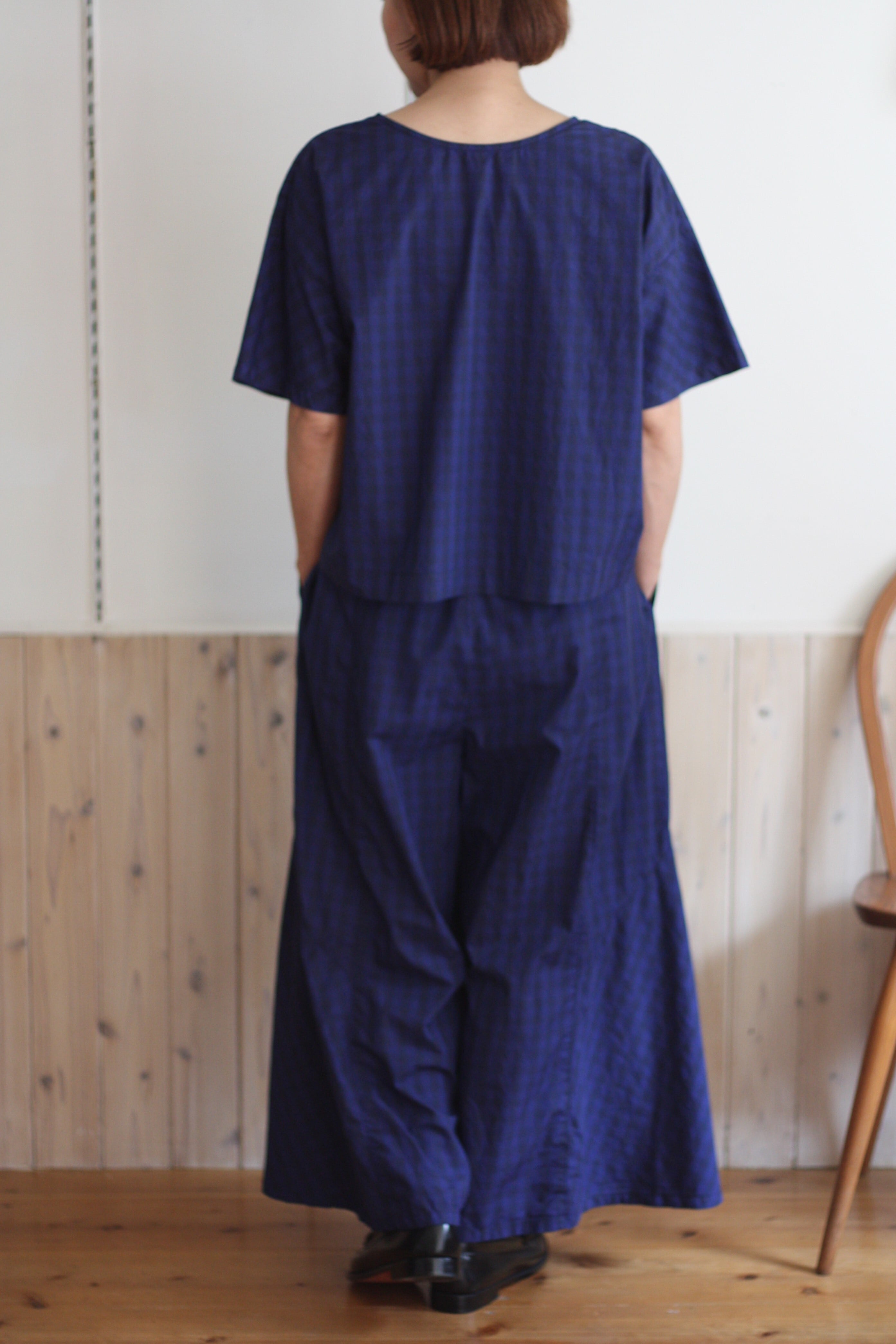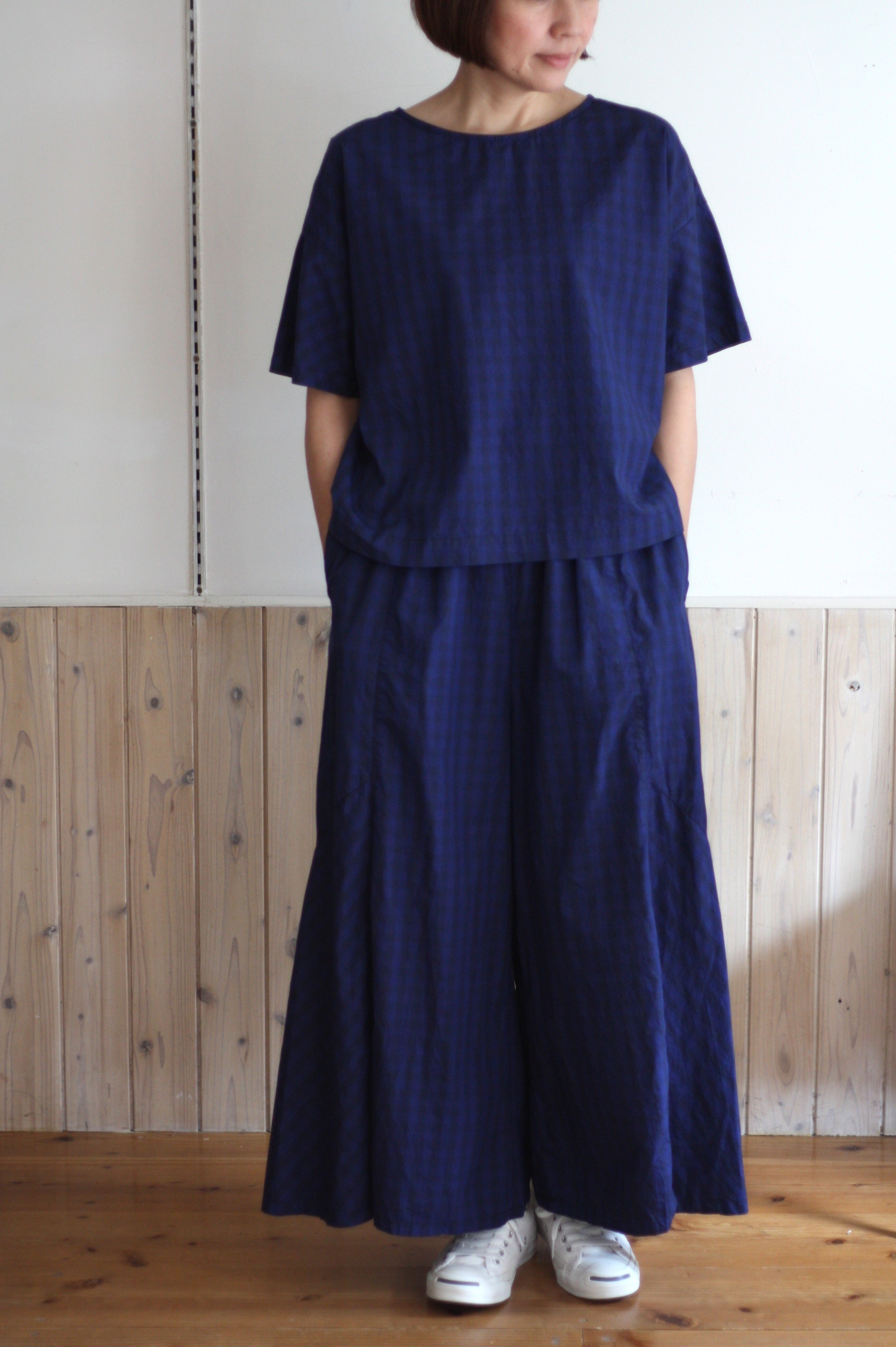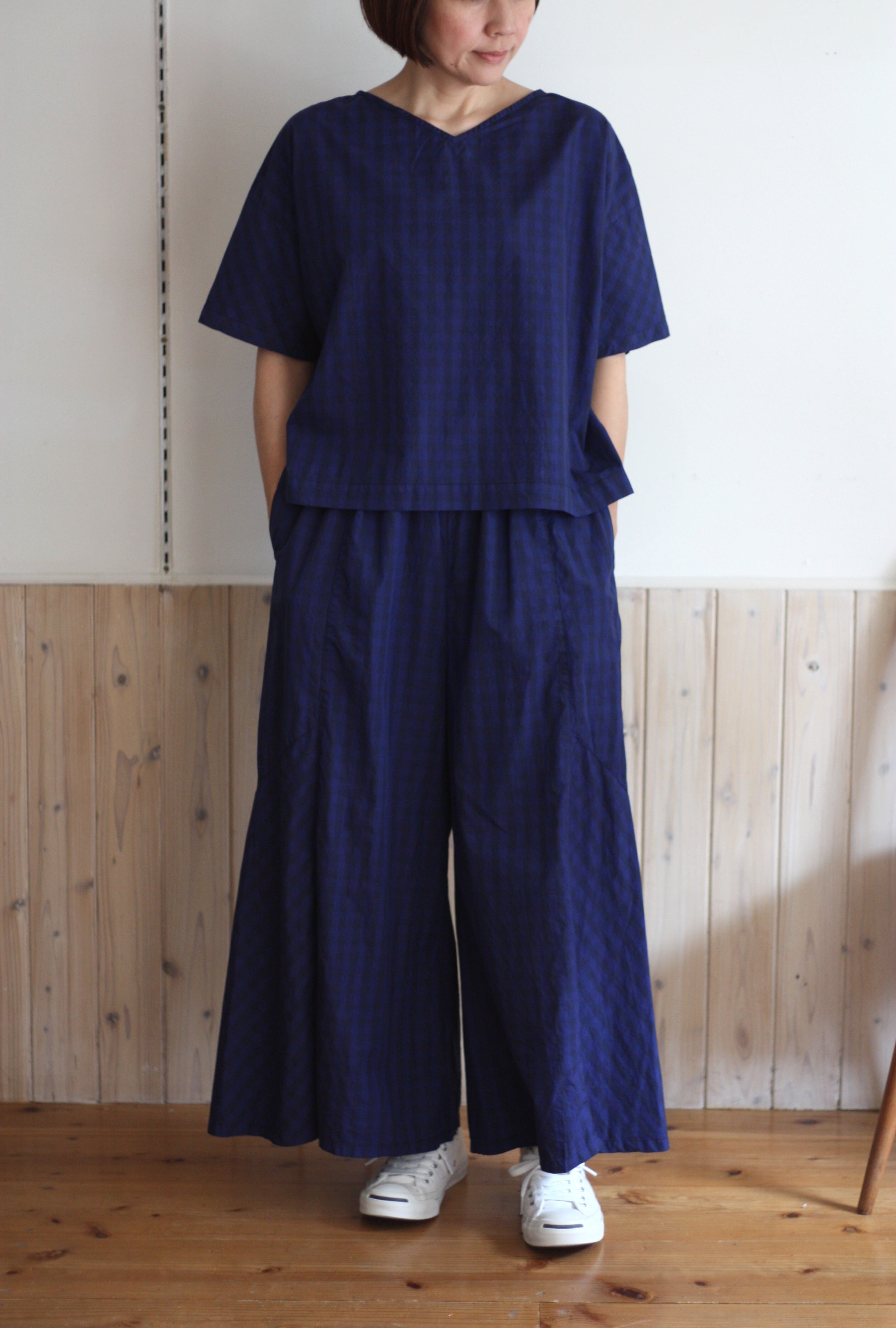 江戸炊きのギンガムチェック生地を使用したブラウス。