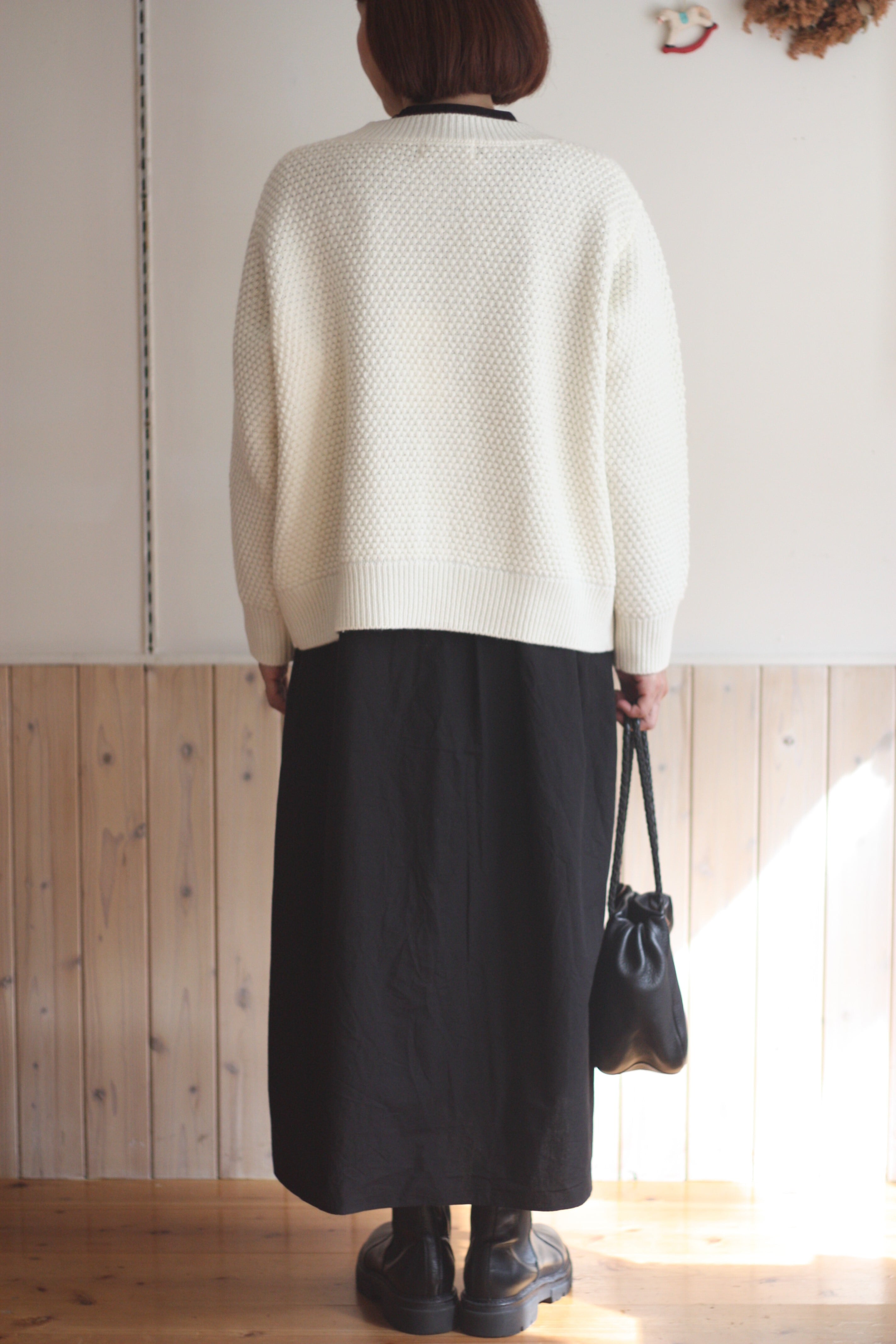 ポップコーン編みという立体的な編みが特徴で、アウター使いにもちょうどよさそうです。