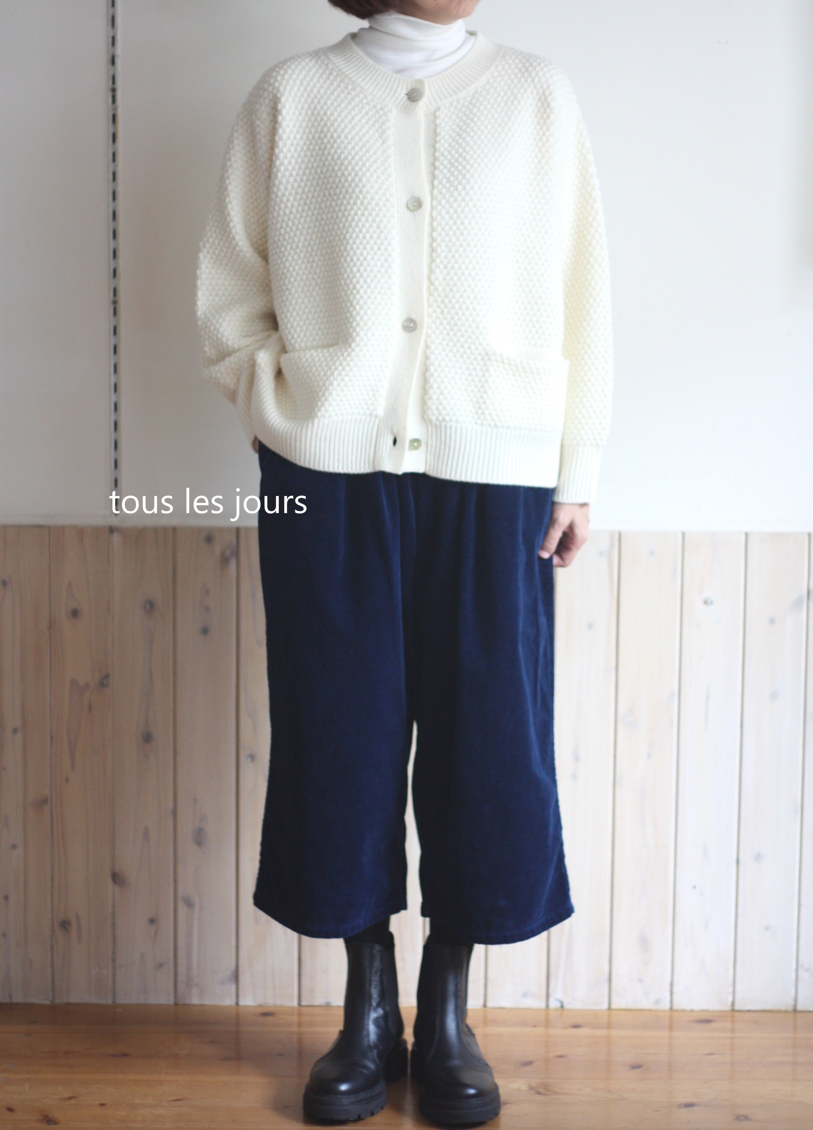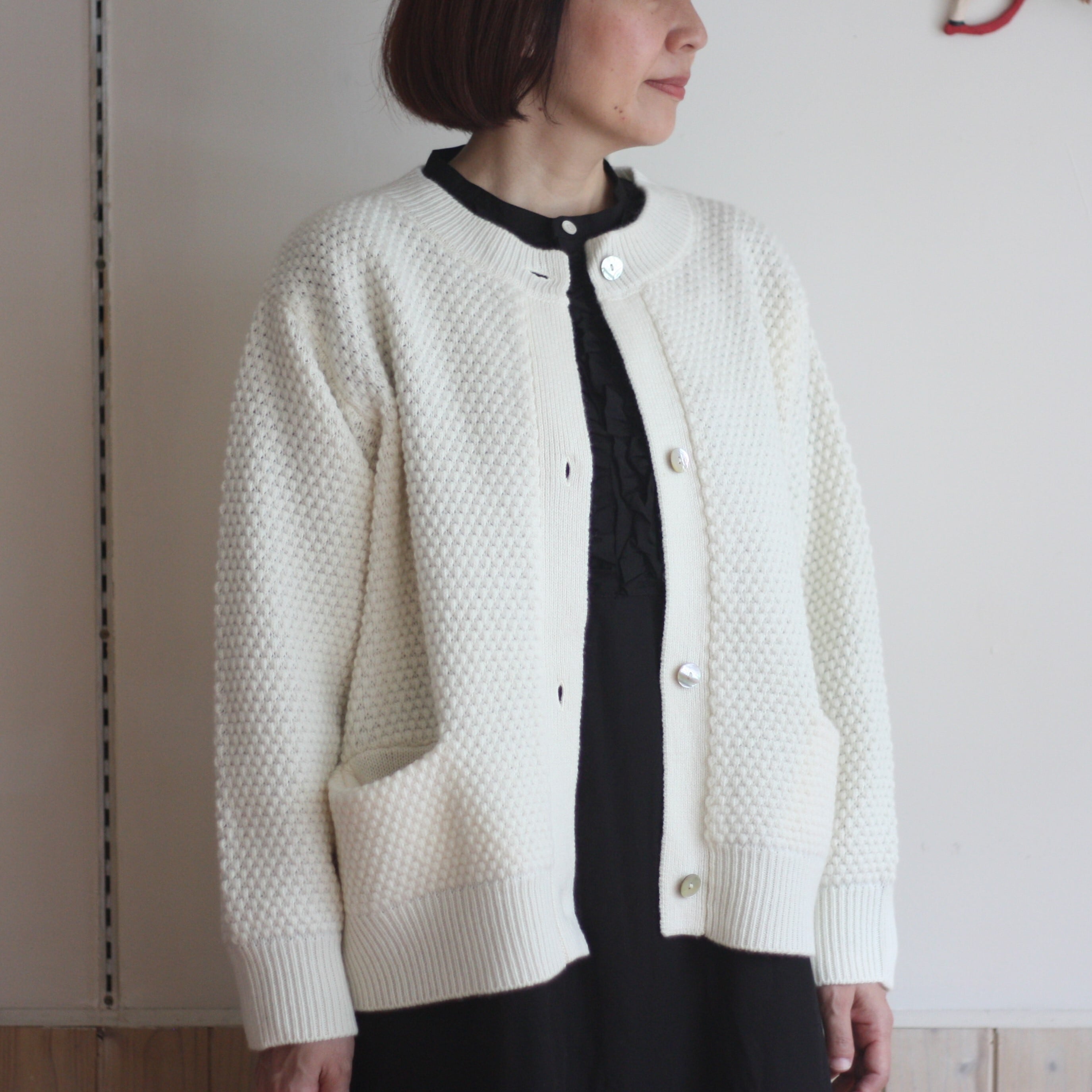 シンプルなデザインながら、ポコポコとした編みに表情あるニットジャケット。