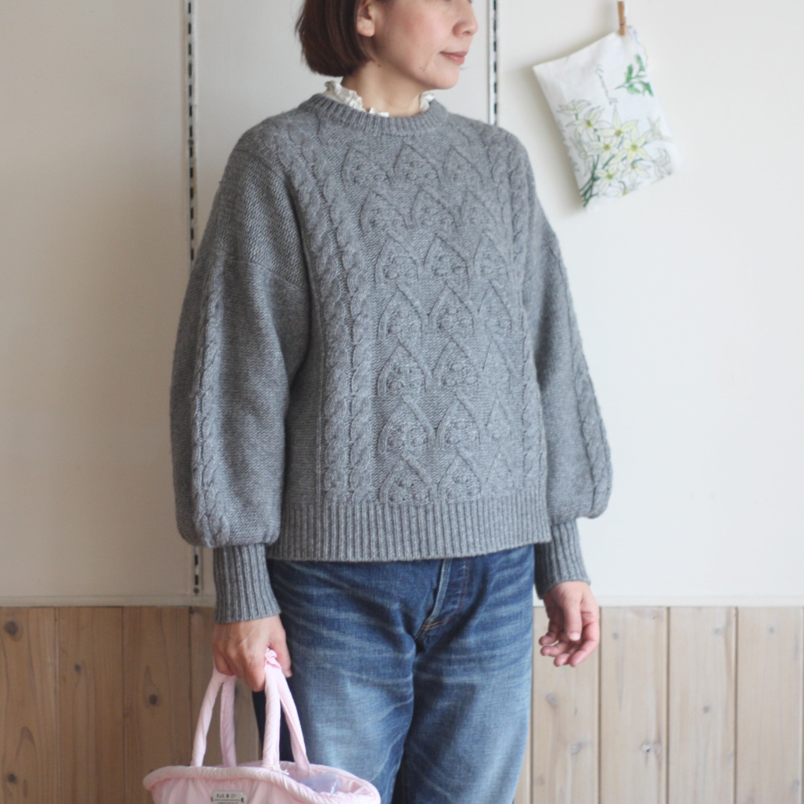 袖口のボリュームがこなれた印象のアランニットプルオーバーが届きました。