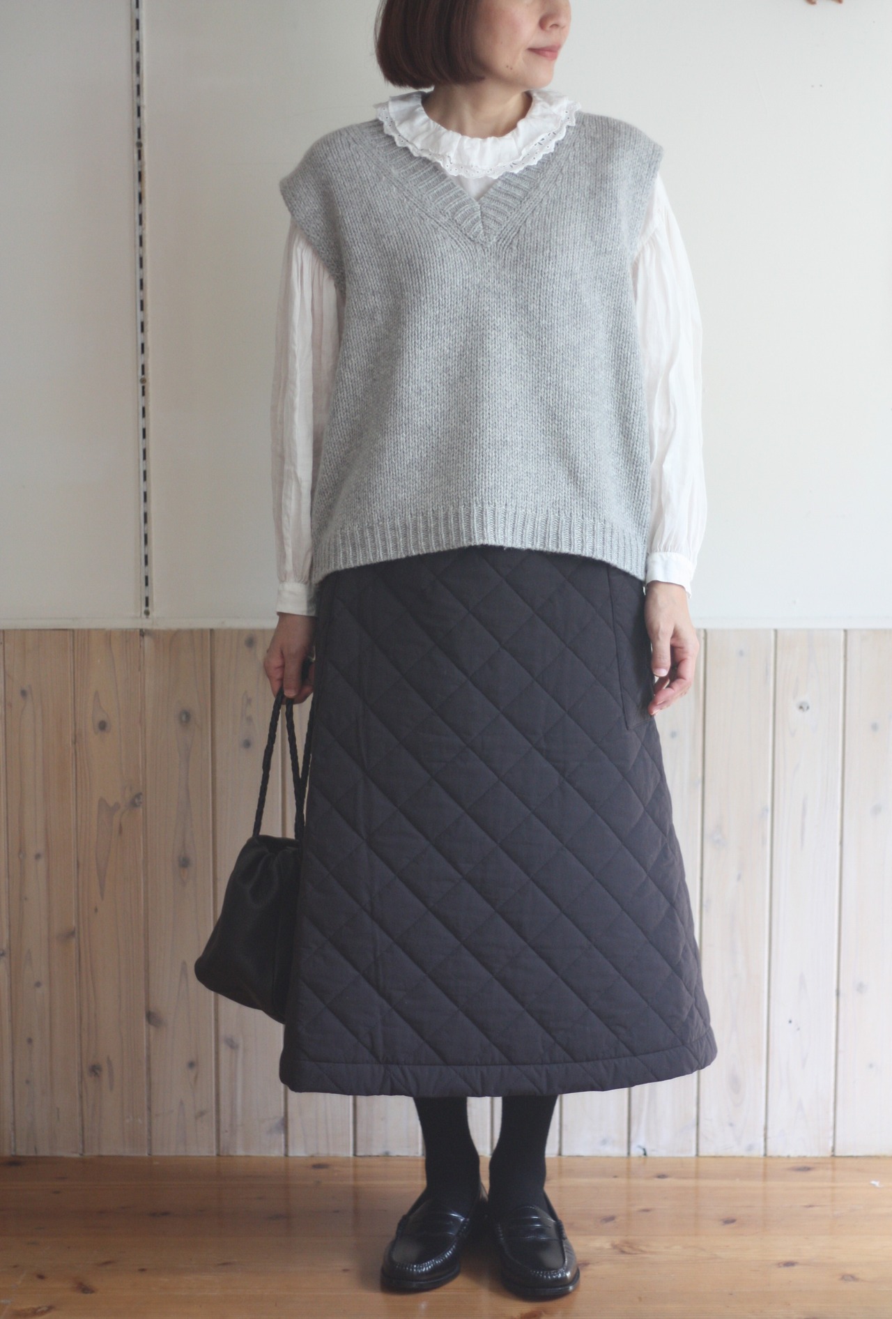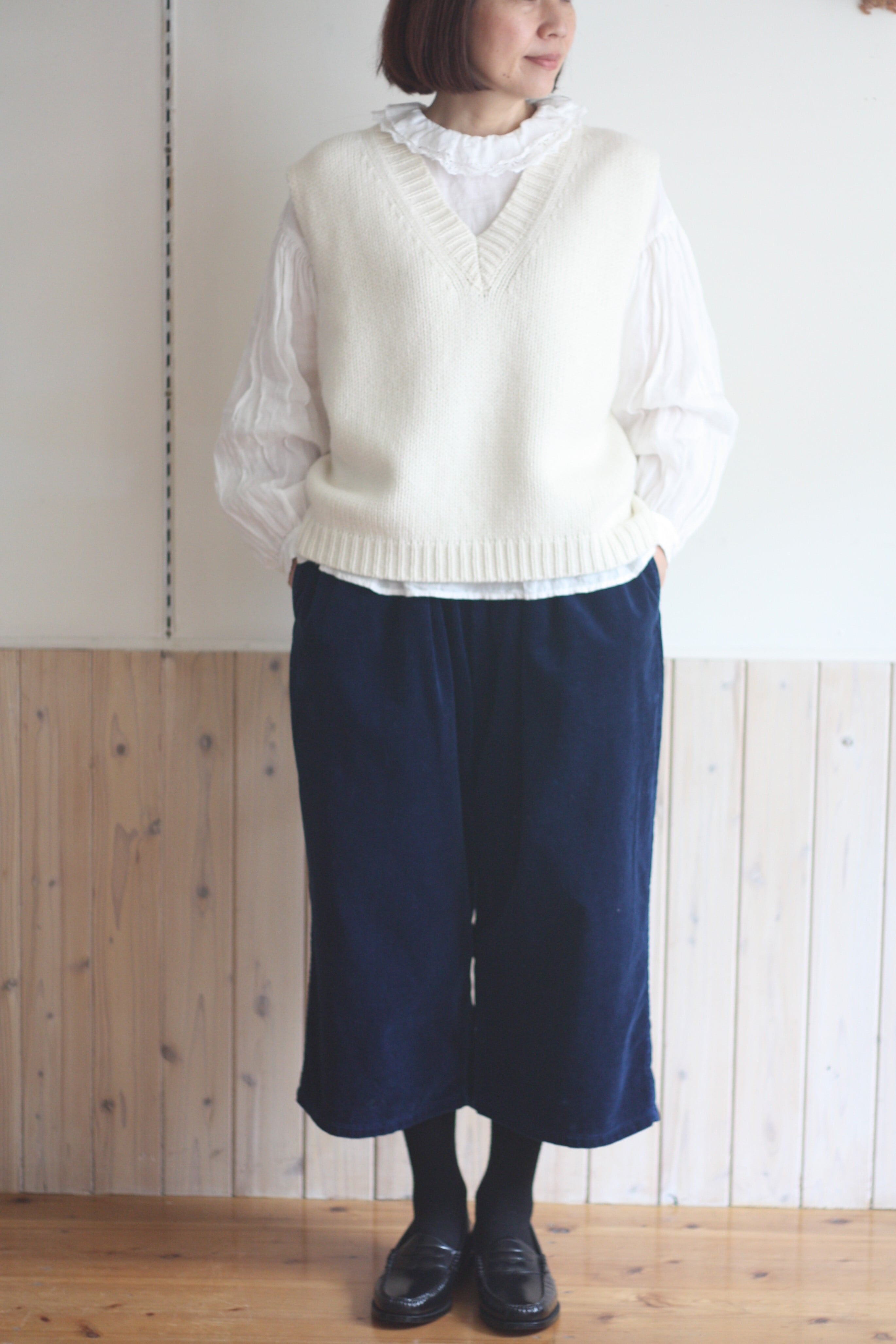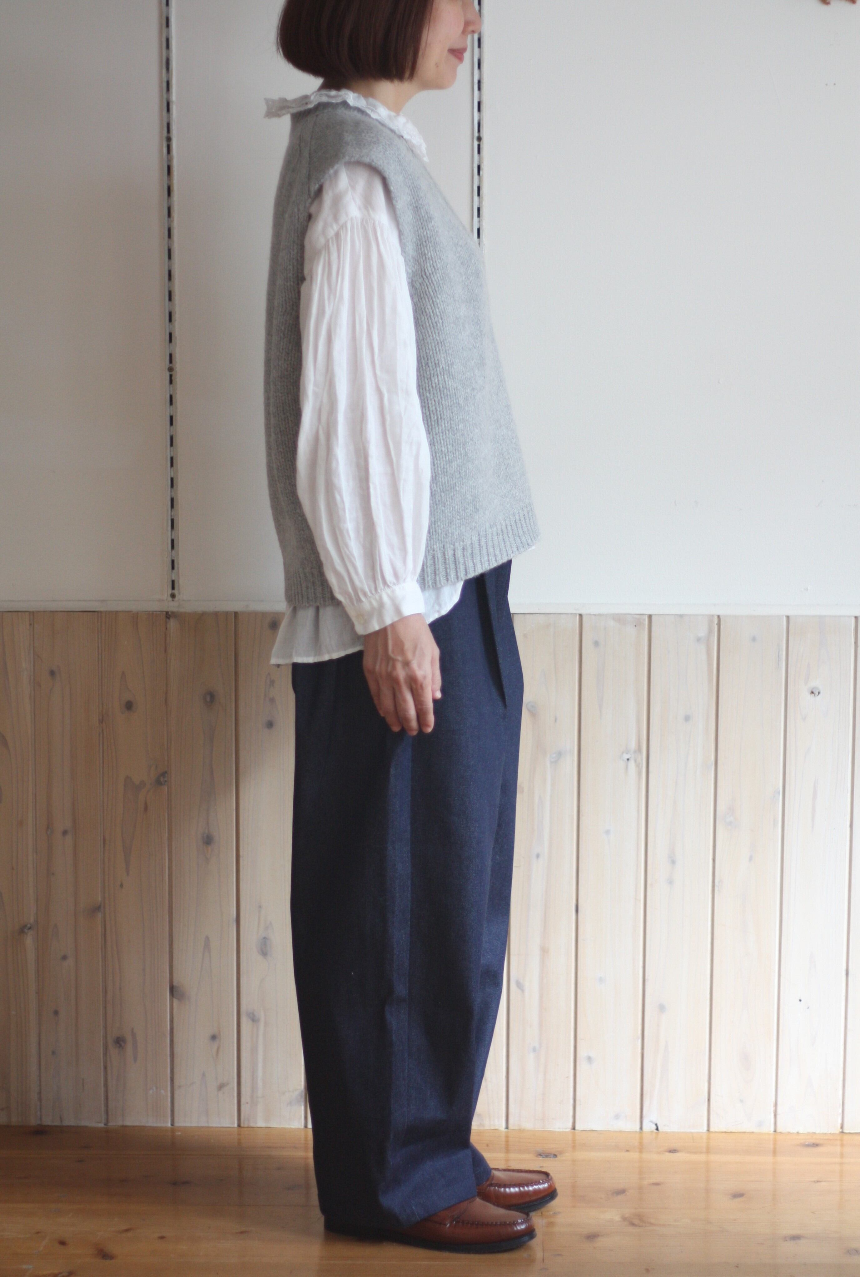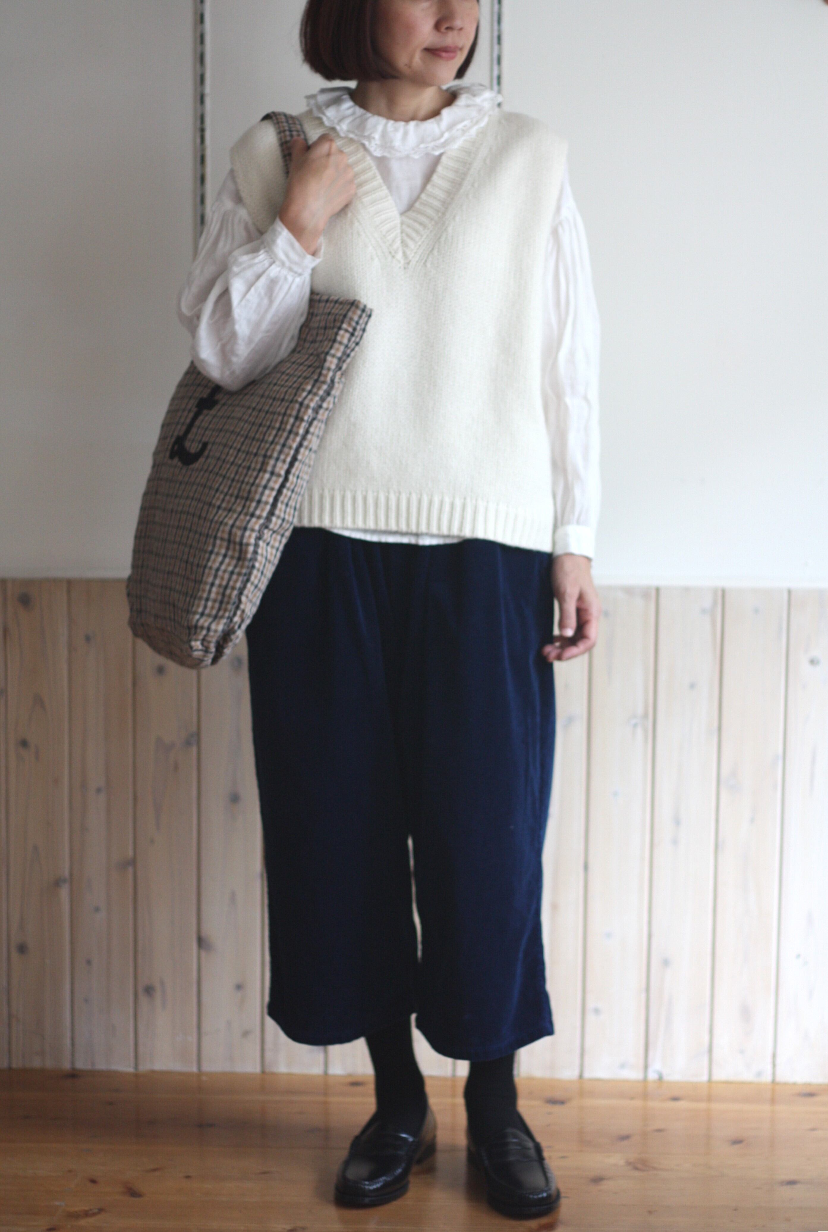 プレーンな形のベストは応用範囲が広いと思います。
